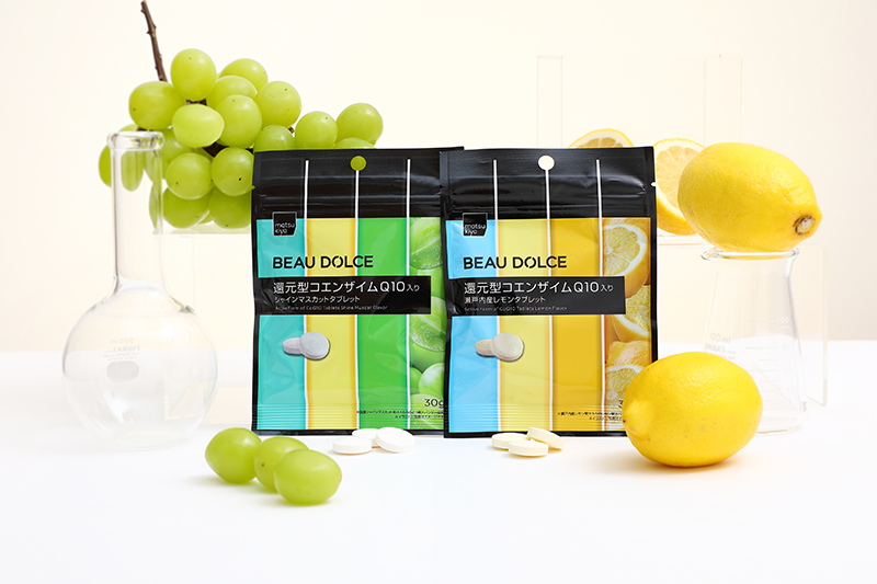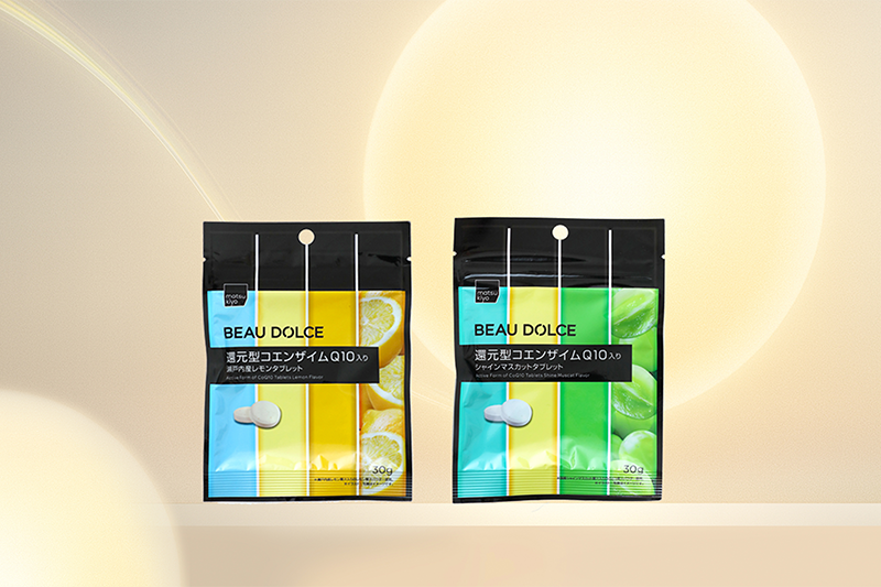 今回、仲間入りしたのはシリーズ初となる「還元型コエンザイムQ10」を配合したタブレットです。美しさと元気をサポートする成分をおやつ感覚で手軽に摂取できます。