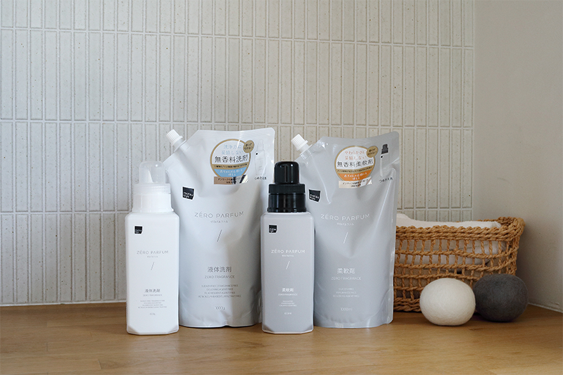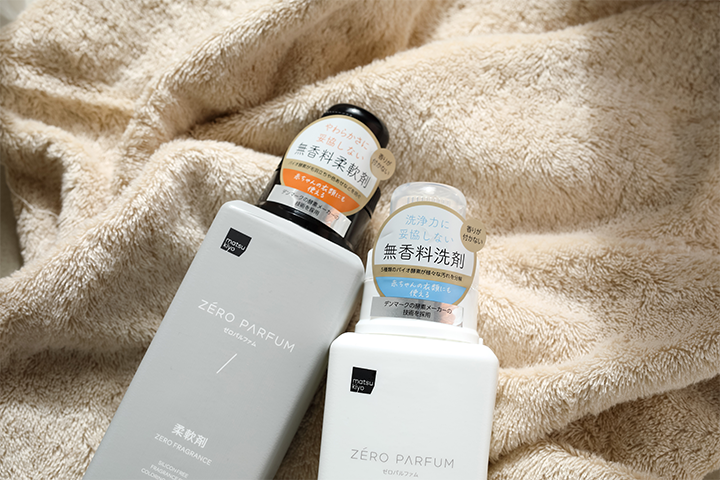 洗濯というのは毎日、あるいは1週間のうちの多くで行うもの。そして、そのたびに登場するのが洗剤や柔軟剤です。ですから、多くのかたが自身のこだわりを持って選んでいるアイテムなのではないでしょうか。そんな中、今回の「matsukiyo ゼロパルファム」は無香料を軸に、衣料用洗剤は洗浄力に妥協せず、柔軟剤はやわらかさに妥協しない、というこだわりをプラスした次世代のランドリー用品になっています。