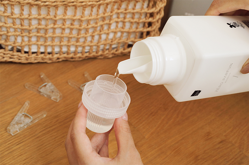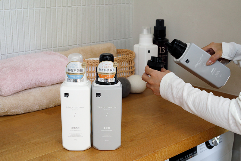 無香料なので、好みの香りの柔軟剤があるかたはそちらと組み合わせて使うのもOKです。これまでの香料入りの洗剤では、組み合わせによっては柔軟剤の香りと混ざり、本来の香りがいかされていないかもしれませんが、無香料洗剤なら好みの柔軟剤の香りも楽しめます。