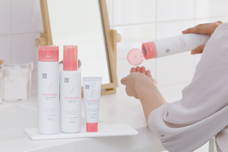 医薬品の「matsukiyoヒルメナイドシリーズ」は、医療用と同成分の保水有効成分「ヘパリン類似物質」を配合した商品で発売以来大好評いただいているシリーズ。医薬部外品のビューティラインも展開していて、その第3弾としてシリーズ初の薬用ベーシックスキンケアアイテム3種が登場しました。