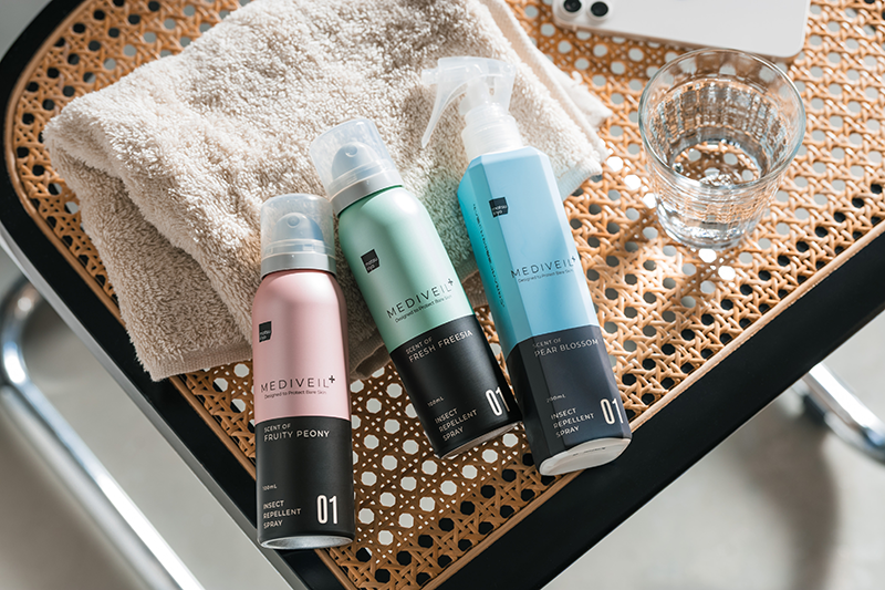 私も虫よけはできれば使いたくないものの、屋外に出る際はさすがに使わずには過ごせず、毎年この時期はモヤモヤしながら虫よけを使用しているひとりです。虫さされによるかゆみや腫れ、うっかりすると跡が残る…。とにかく虫にさされたくないという気持ち優先で、使用感などは後まわしにしてでも使用してきました。しかし、今回のmatsukiyo メディヴェールは使い続けたくなる心地よさ、香りや処方、デザインにもこだわったシリーズということで、期待値は大!