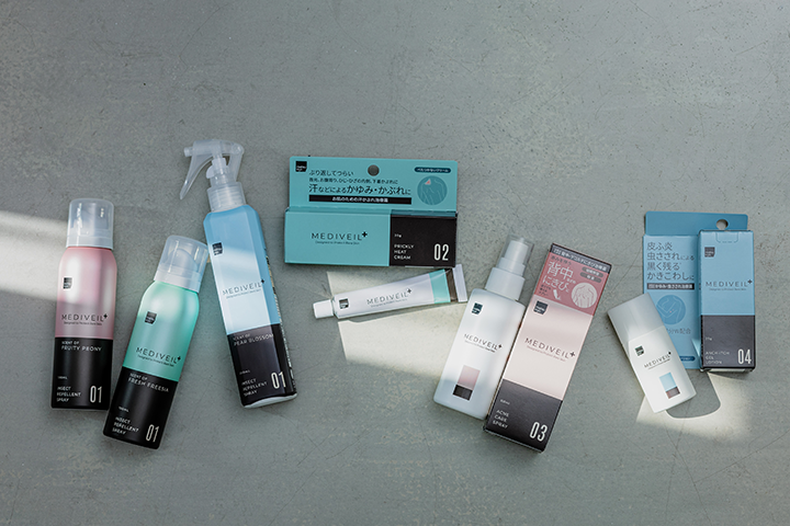 「matsukiyo メディヴェール(MEDIVEIL+)」は虫よけで防ぐだけでなく、そのあとのトラブルケアまで見据えたシリーズ。“守る”から“整える”まで、肌をまるごと守るケアが叶います。