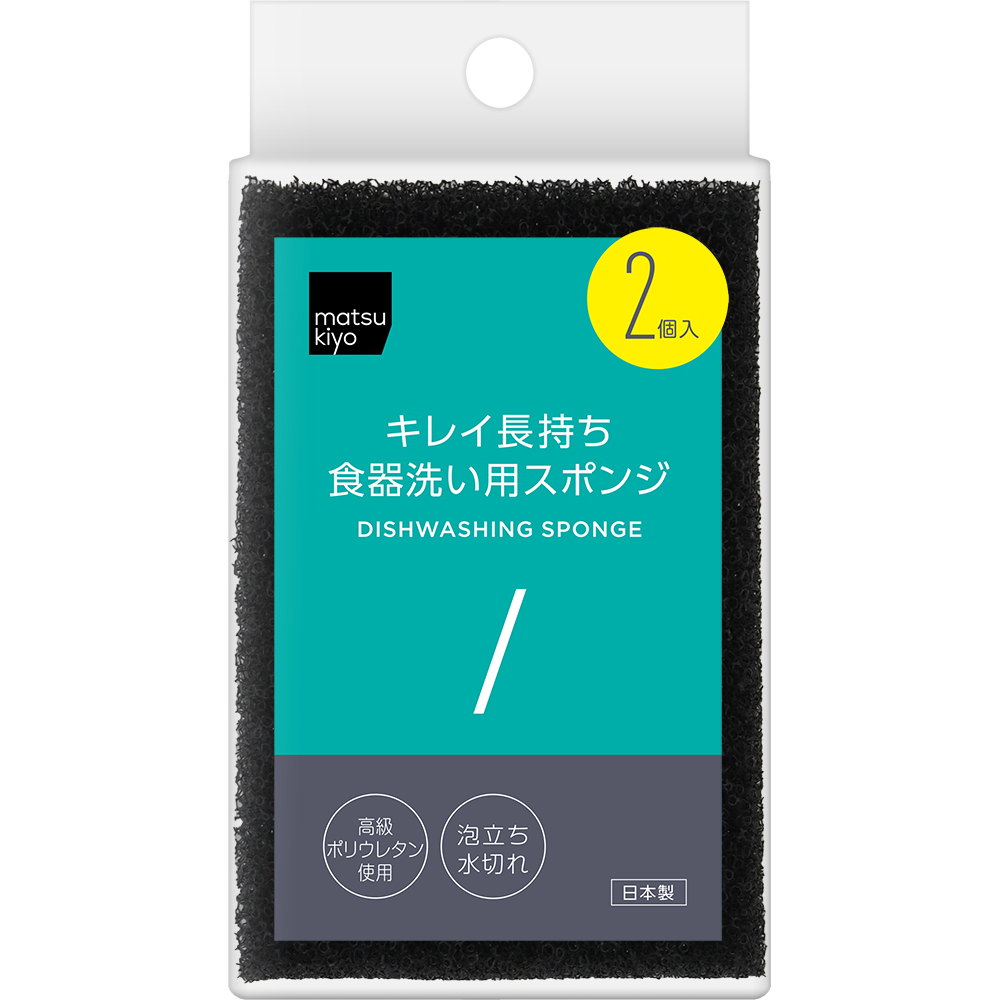 matsukiyo キレイ長持ち食器洗い用スポンジ 黒 2P