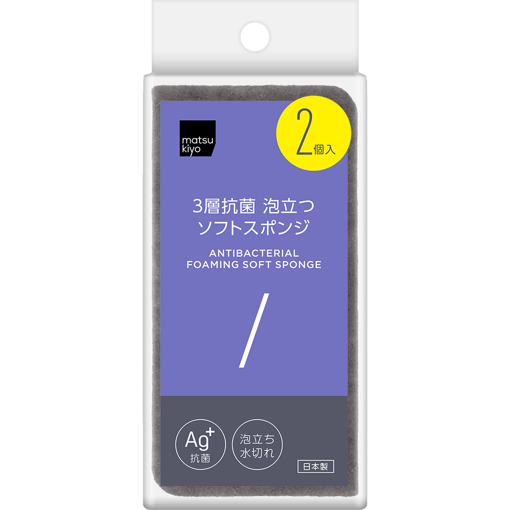 matsukiyo 3層抗菌 泡立つソフトスポンジ グレー2P