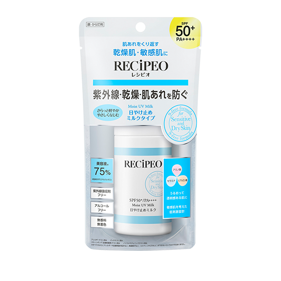 なめらかなUVミルクは肌を自然にトーンアップさせ、うるおった透明感のある肌がつづきます