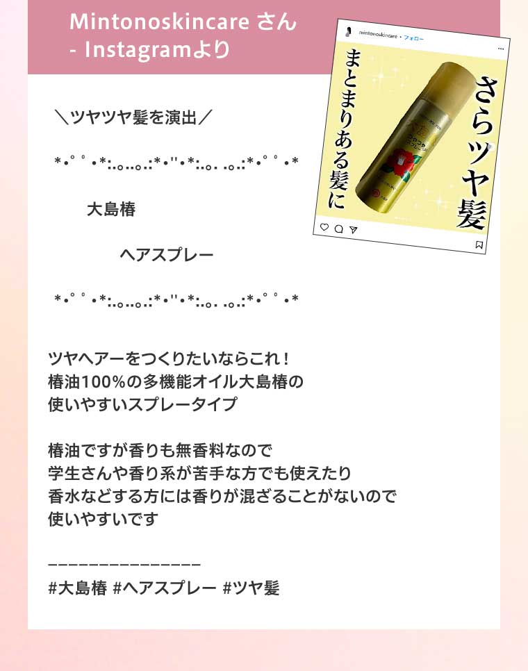 【SNSで人気!】話題の大島椿スプレーやオイルがおトク!