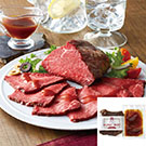 セット内容:ローストビーフ300g、グレイビーソース30g 2〜3ミリの厚さにスライスした牛もも肉をスパイスで味付けして丁寧に調理。大宮シェフ特製のグレイビーソースでお召し上がりください。賞味期間:出荷日より冷凍30日
