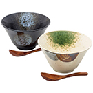 磁器 約径17×高さ9.5cm(900ml) ラーメン丼×2、木製レンゲ(全長15cm)×2 袋麺一杯分がちょうど入るラーメン鉢 日本製