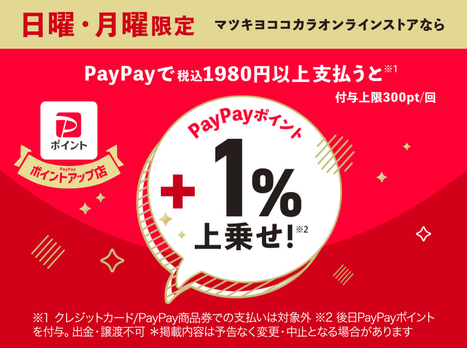 日・月曜日限定 PayPayポイント+1%上乗せ!