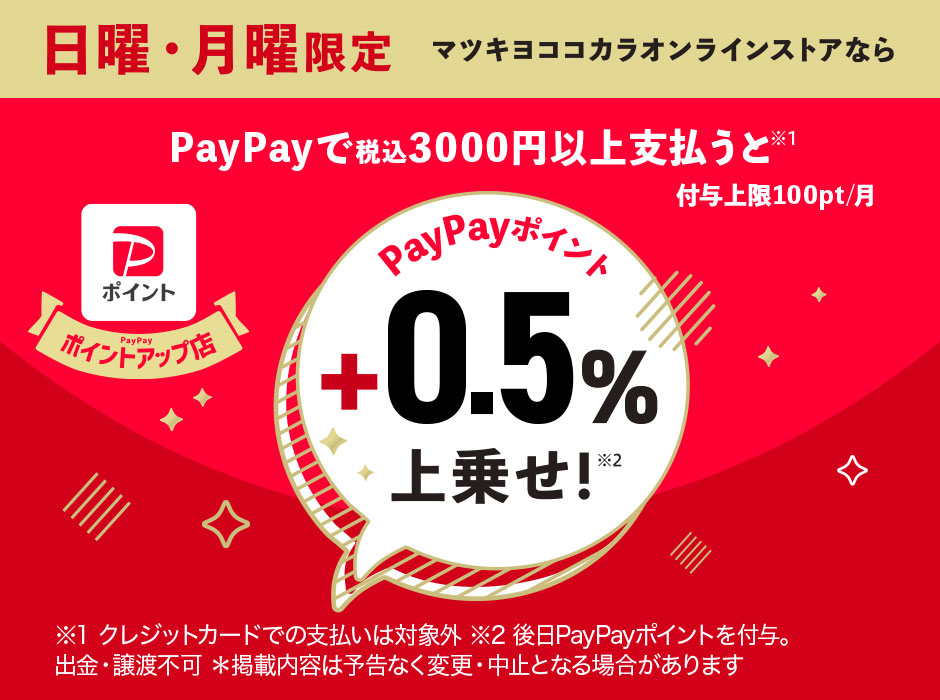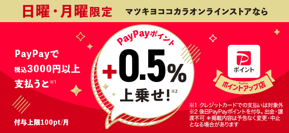日・月曜日限定 PayPayポイント+0.5%上乗せ!