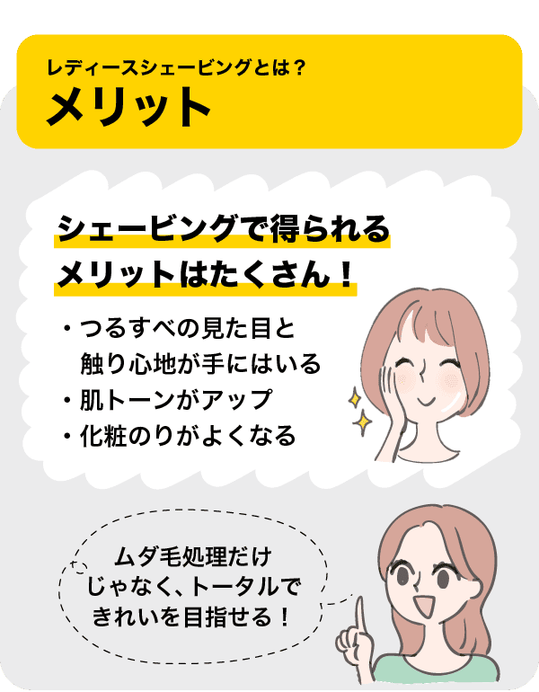 ほかにも、顔の産毛を剃ると化粧のりがよくなり、ファンデーションの付き・持ちがアップするうれしい効果も。