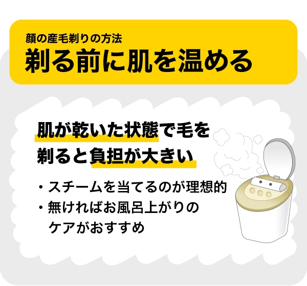 できればスチームを当ててから剃るのが理想ですが、スチーマーを持っていない人や時間がない場合は、お風呂上がりのケアがおすすめです。