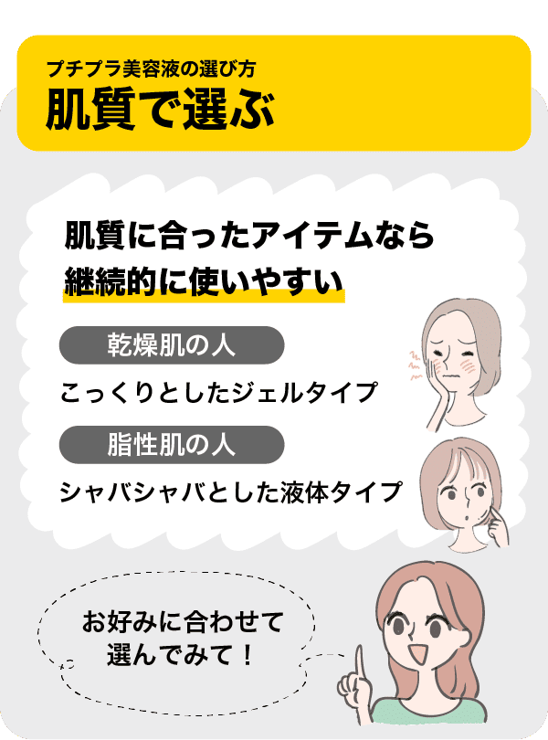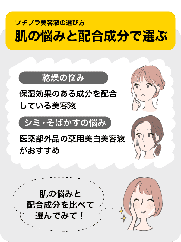 自分に合った、プチプラ美容液の選び方を2つ紹介します。