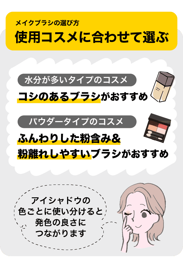 なりたいメイクの仕上がりや使っている化粧品のテクスチャーなどに合わせて選ぶことで、自然で立体的な表情づくりの味方になります。