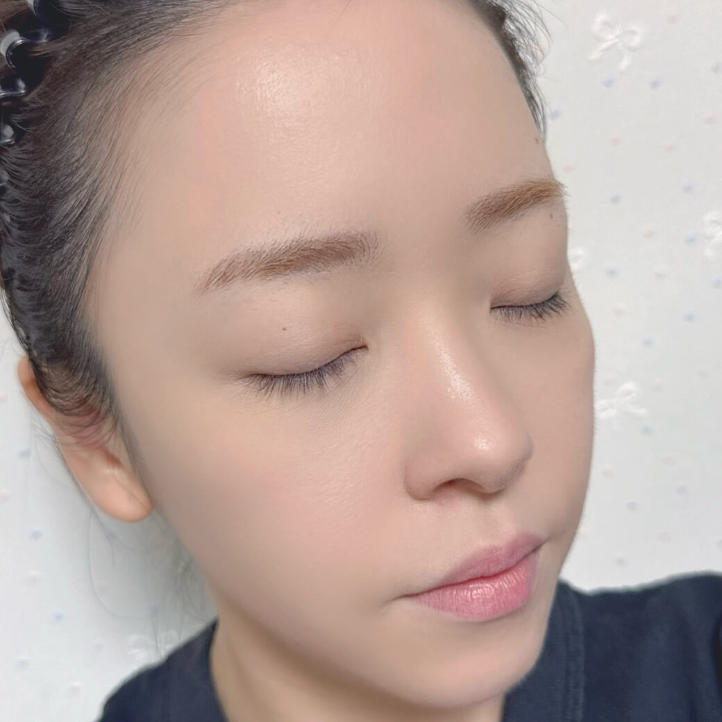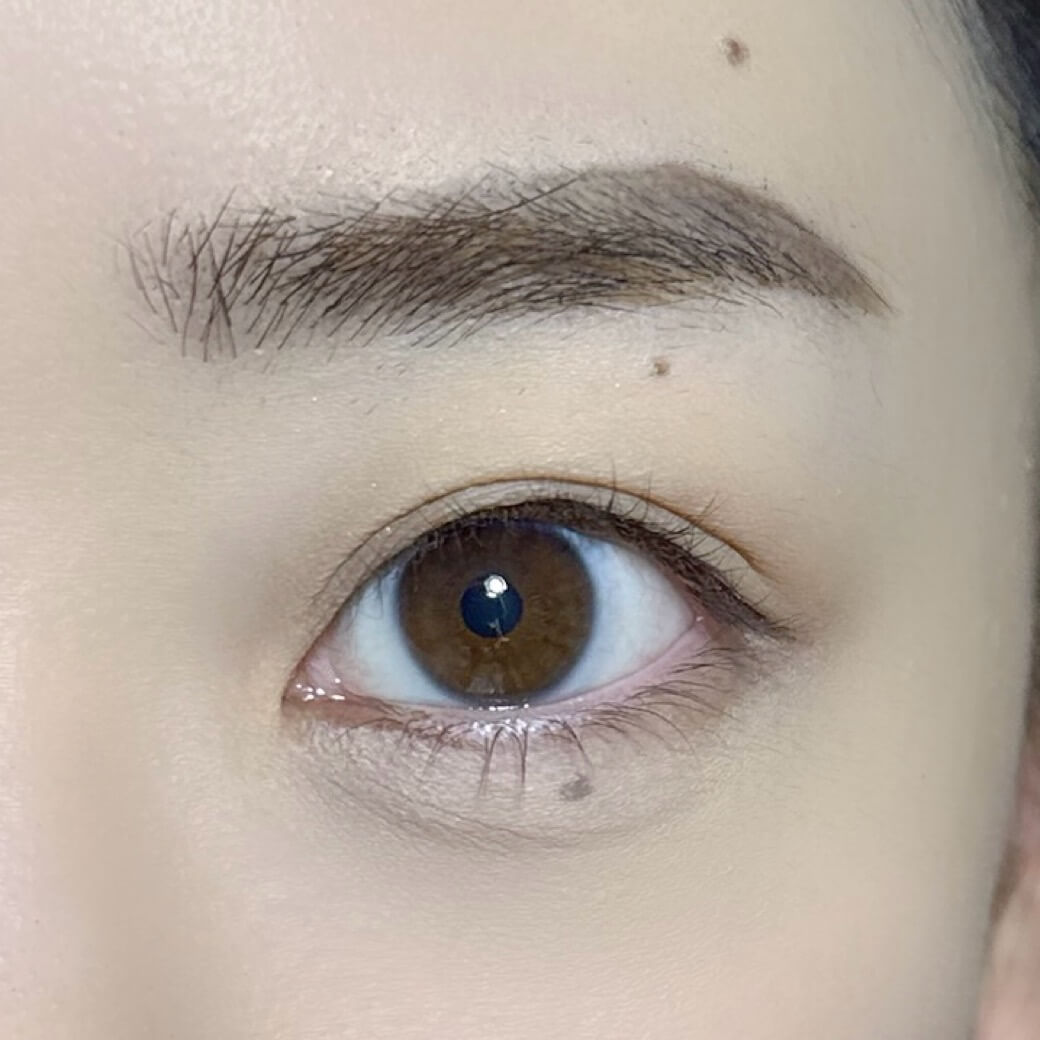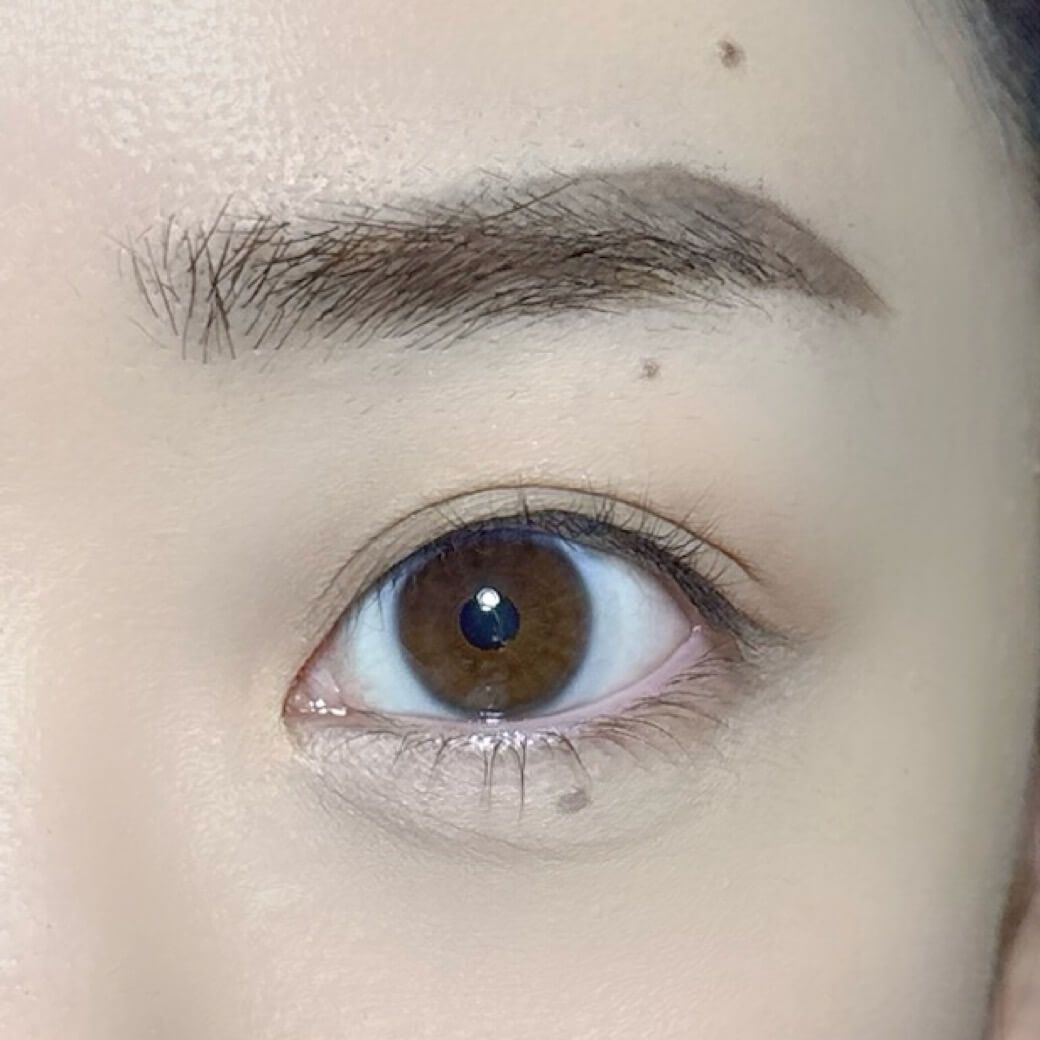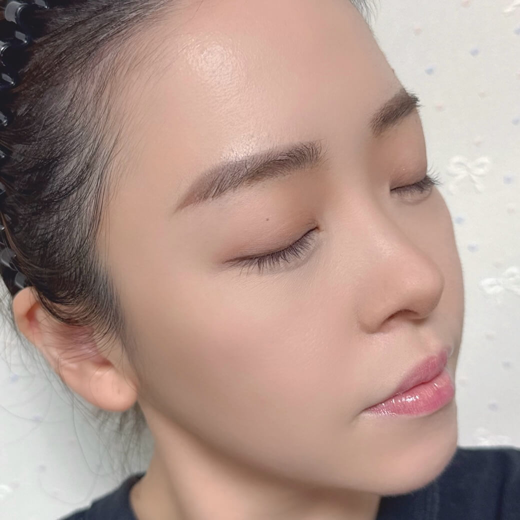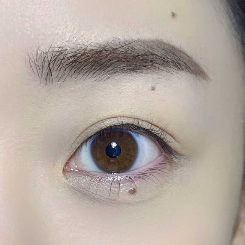 また、下まぶたの粘膜部分には、目頭側にのみ薄くラインを入れることで、目元の形がより際立ち、すっきりとした目元に仕上がります。