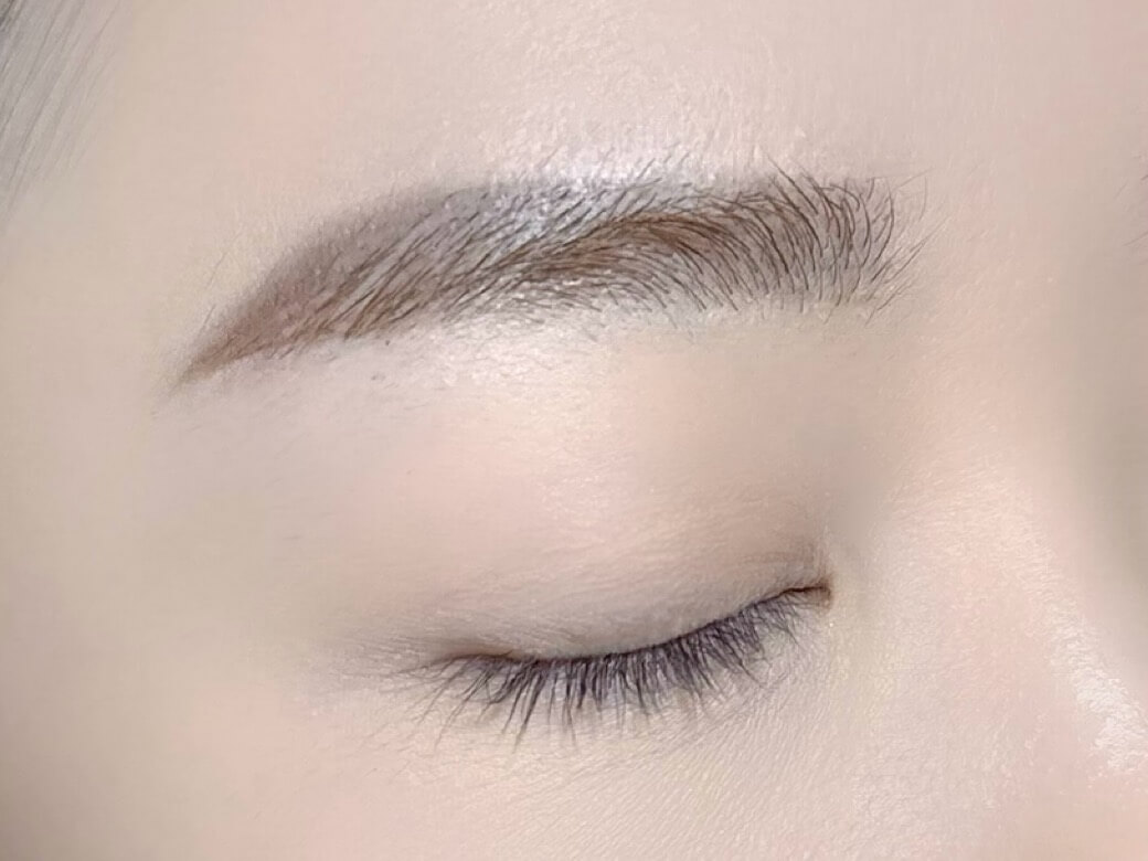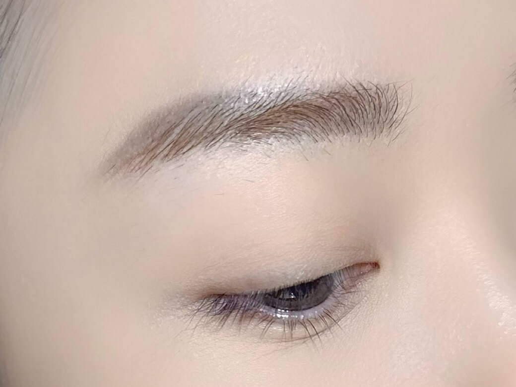 まずはアイブロウパウダーを使用し、眉毛の隙間を埋めながら、全体のフォルムを整えていきます。
