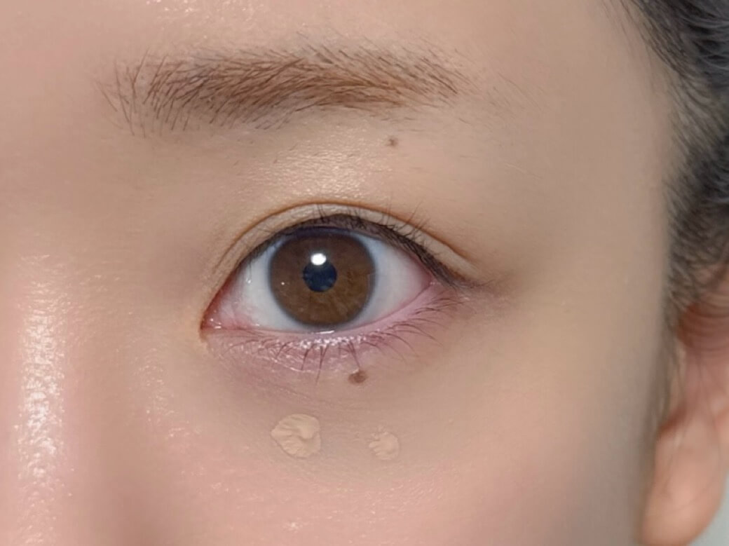 コンシーラーは直接塗るのではなく、指先に少量をとってからポンポンと優しく肌にのせるようにすると、肌になじんでシワにならずに仕上がります。
