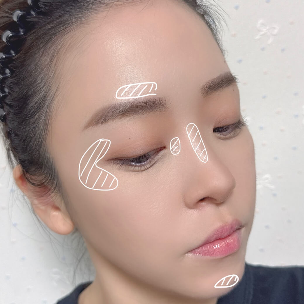 次に、高く見せたい部分にハイライトカラーをのせて立体感をプラスします。男装メイクの場合は、ギラギラと強いラメ入りのものよりも、控えめなパール感のある明るめカラーを選ぶのがおすすめです。
