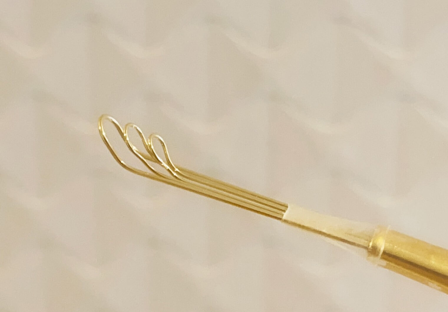 先端部が3連のループワイヤーになった、サジ型タイプの耳かきです。乾性と湿性どちらの耳垢もしっかりキャッチして掻き出します。