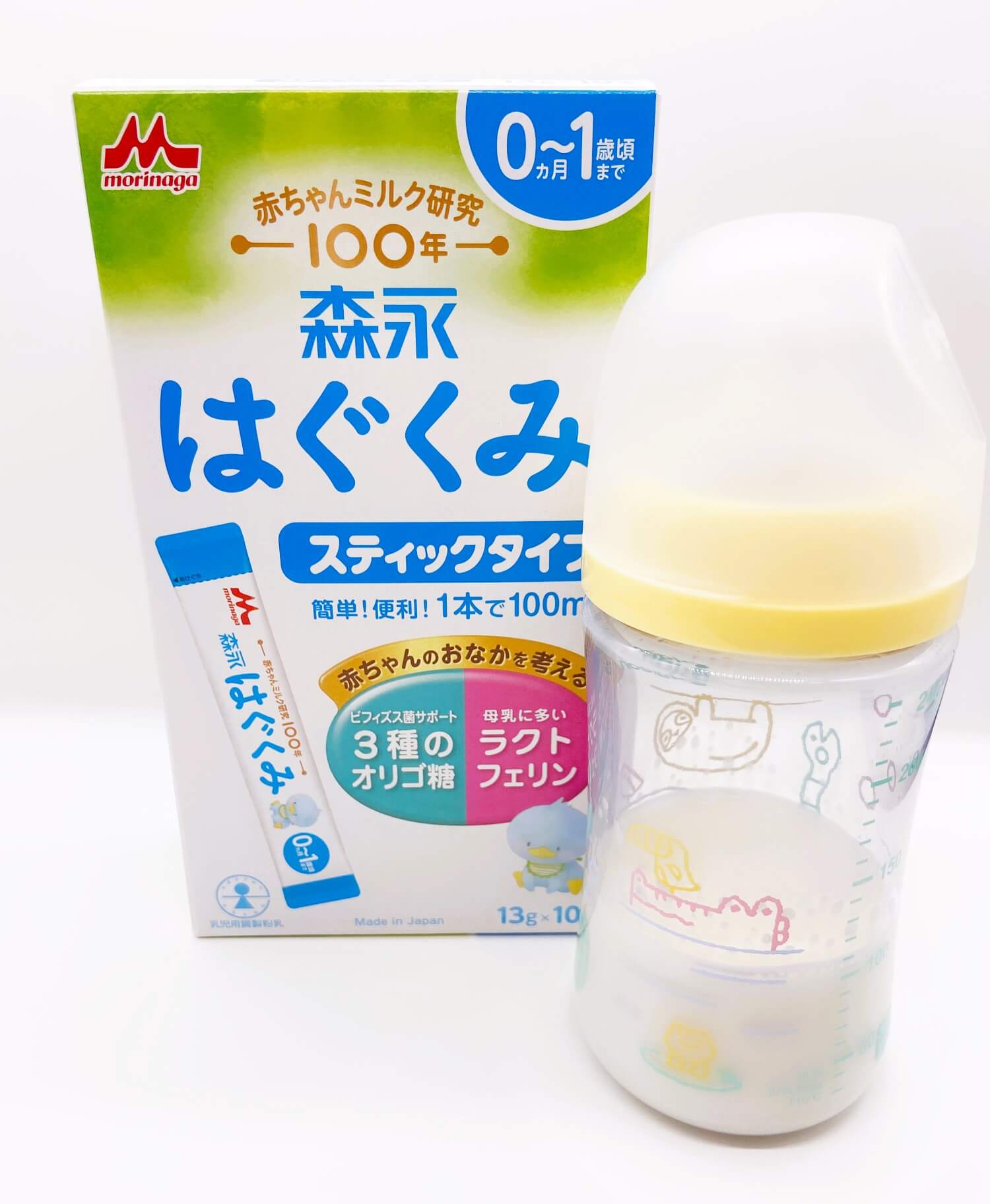 はぐくみスティックタイプは、この母乳研究の成果を生かし、赤ちゃんの成長に不可欠な栄養素を、母乳に近いバランスで配合しています。