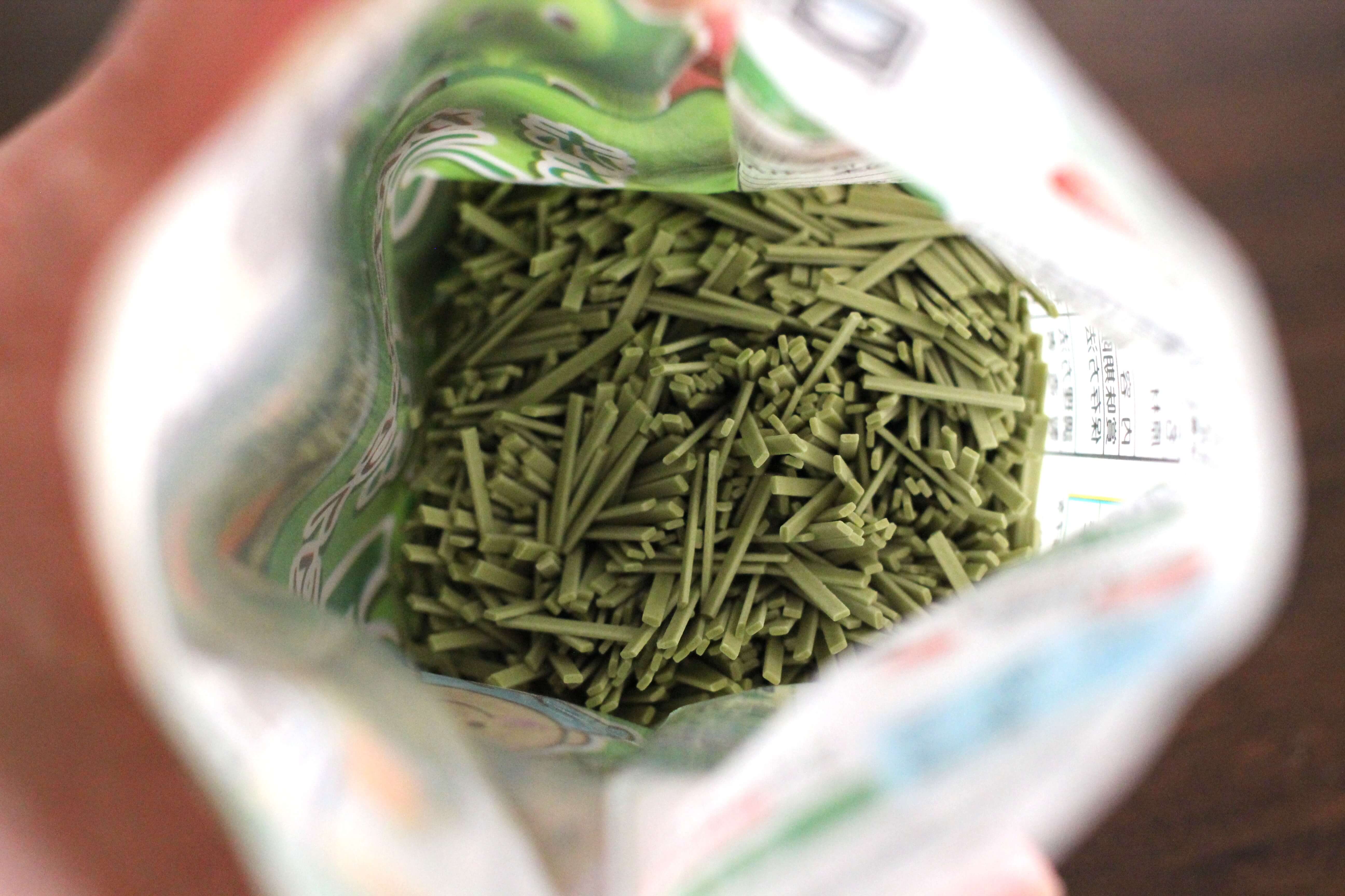 国産100%のほうれん草とブロッコリーを練り込んだ、やさしい緑色のうどん。短くカットされているため、離乳食初期から幼児食まで長く活用できます。