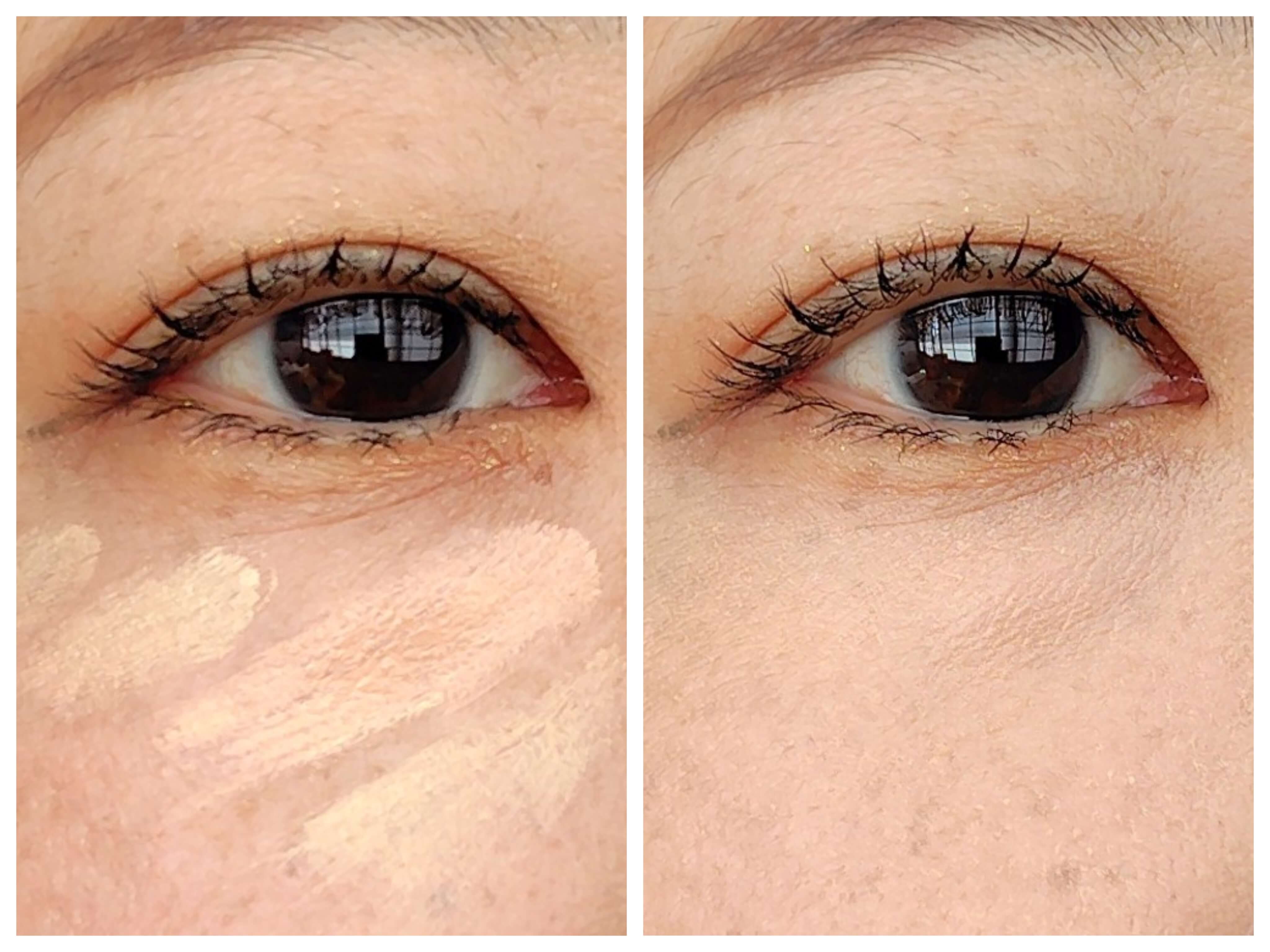 シリーズは2色展開、今回選んだのはミディアムのカラーです。他にも明るめのライトがありますが、クマをカバーすることを考えたら色が浮きにくいミディアムのほうがなじみがよくおすすめですよ。色白の人ならライトが合いそうです。
