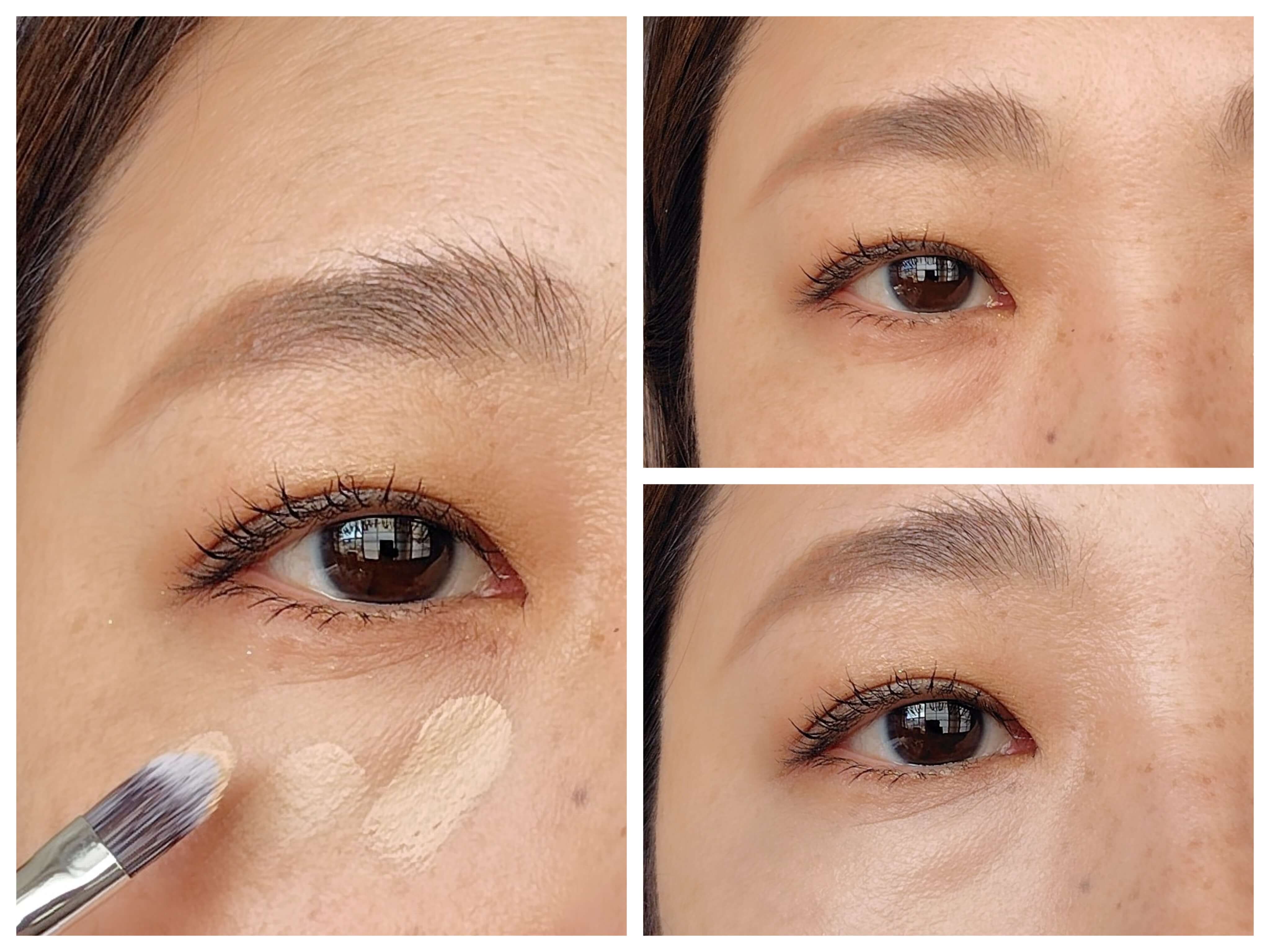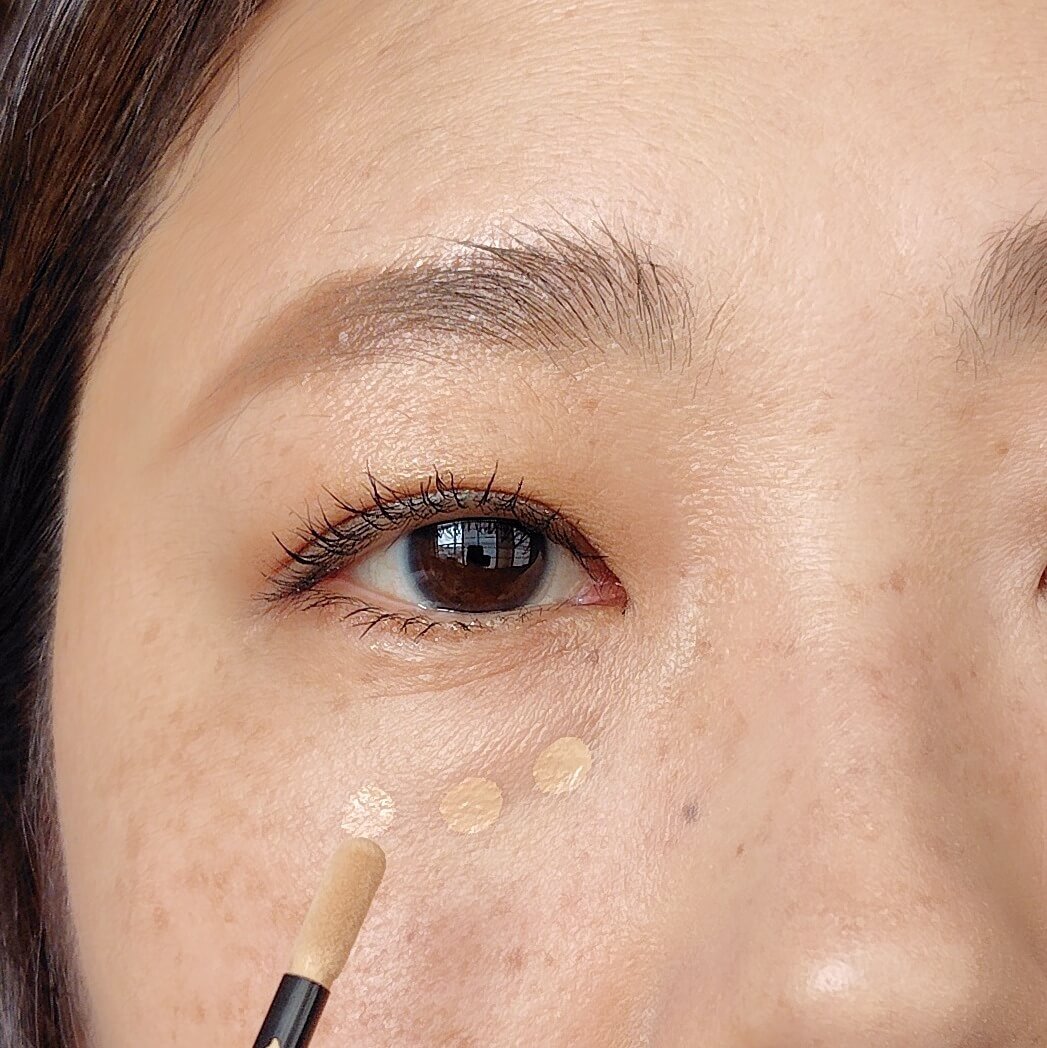 ②肌の色のトーンがそろったらやや明るい色でトーンアップするこの方法で自然にカバーすることができるので、ぜひ参考にしてみてください。目元を明るく見せたいときは、コンシーラーだけでなくハイライトを活用すると自然な仕上がりになりますよ。