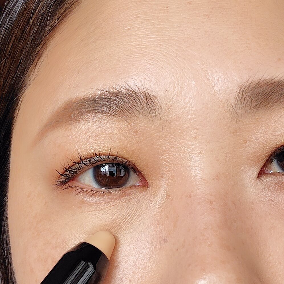 写真ではアイライナーで描いた線の上にコンシーラーを使用しました。濃いラインも目立ちにくくするほどのカバー力は、がんこな濃いクマにも期待できそうです。