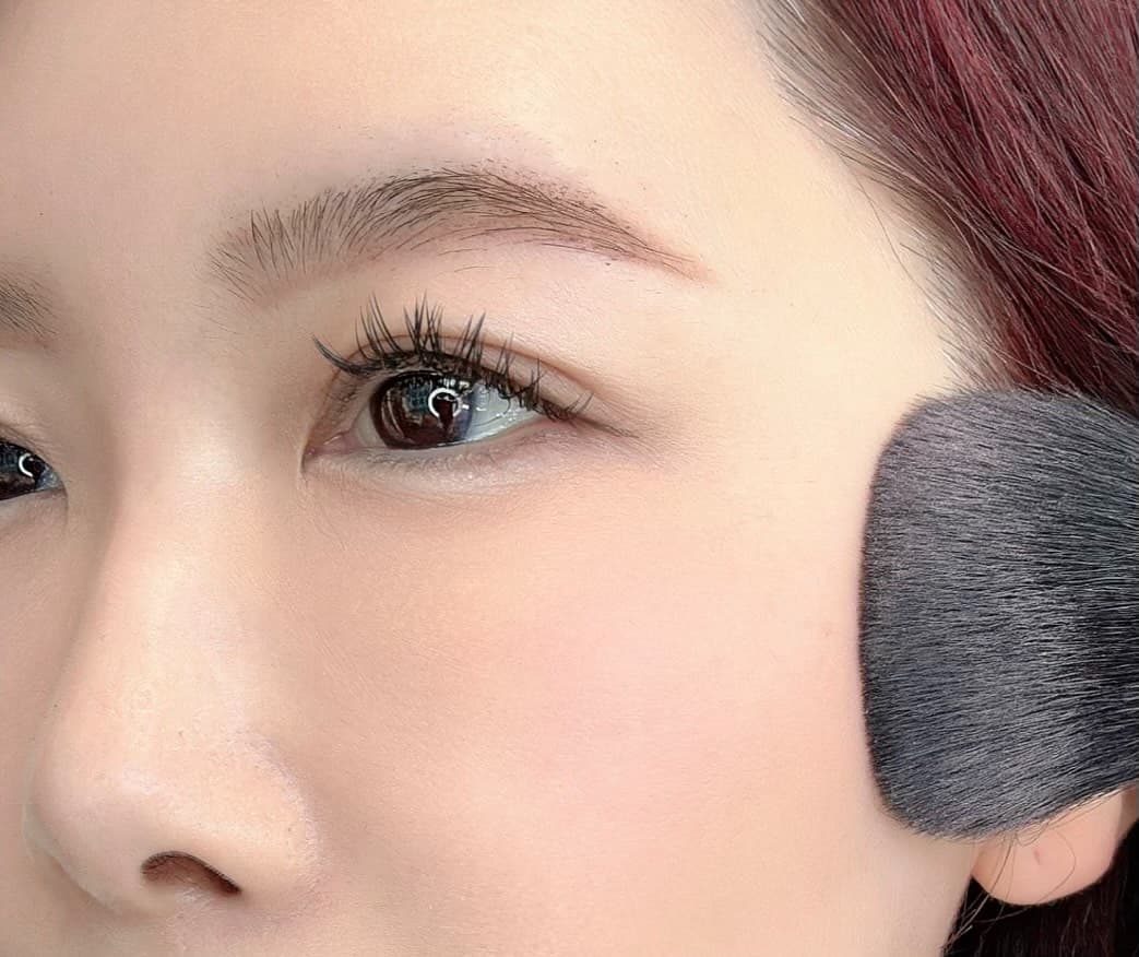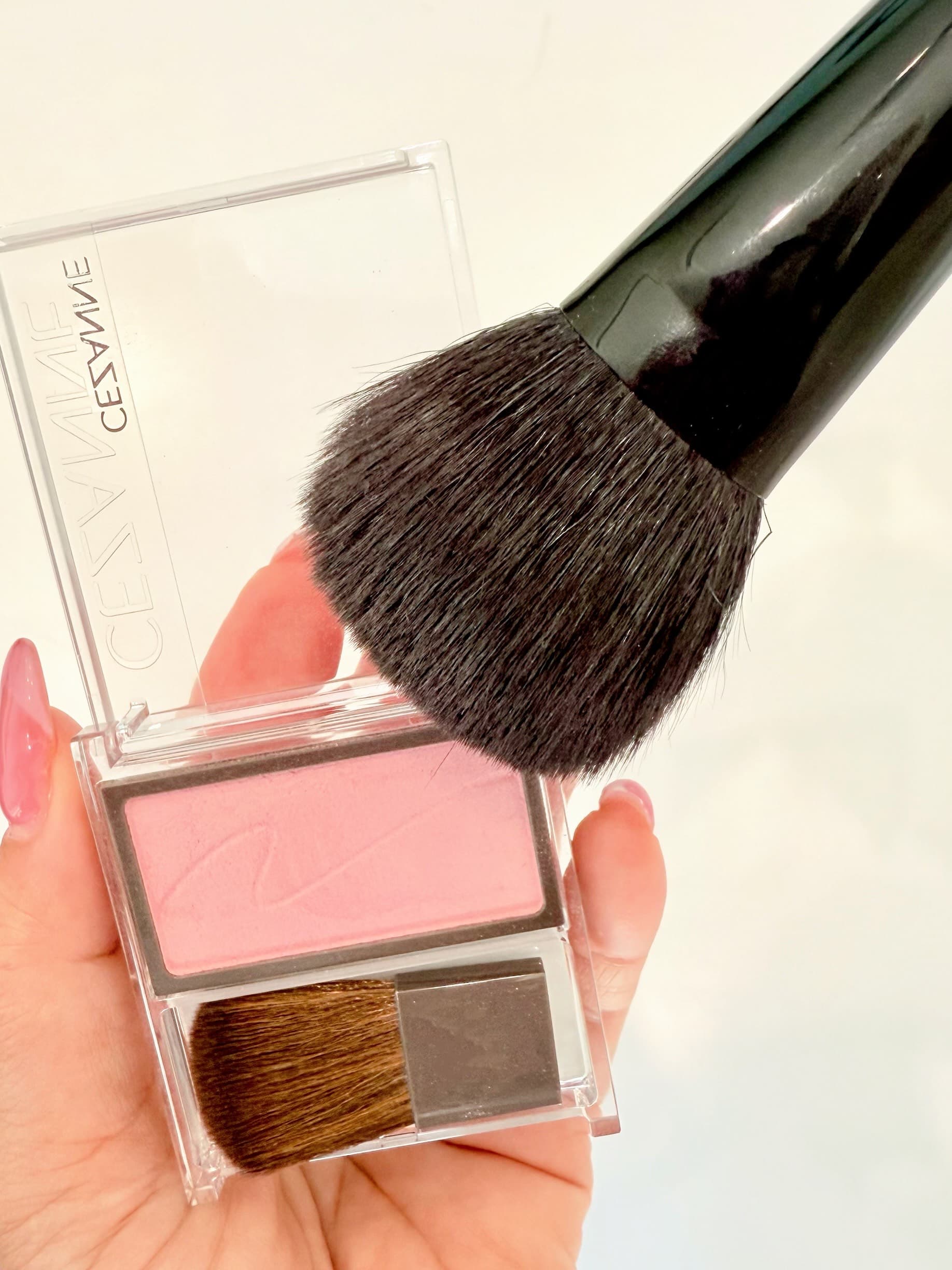 付属ブラシではなく、チークブラシを使うと、テクニックいらずで自然に仕上がります。