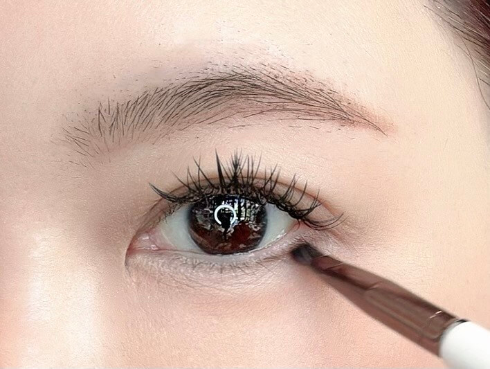アイシャドウ後にまつ毛の隙間を埋めるように細く描くと、自然に目力アップのメイクができます。
