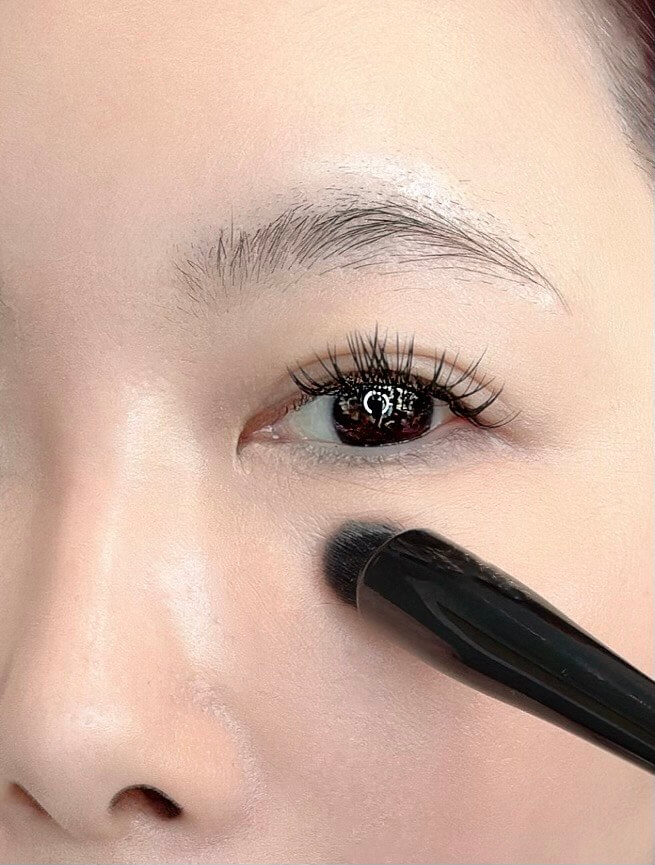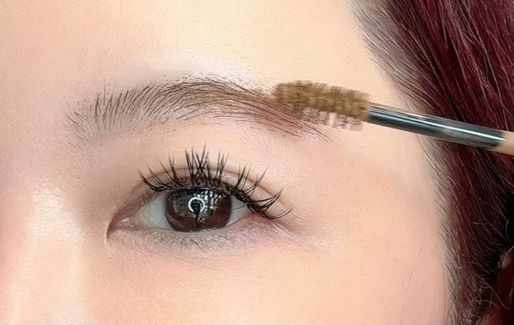 毛流れに逆らうようにつけてから、毛流れに沿うように毛の色を整えると、ぐっと抜け感が出て洗練された印象に。