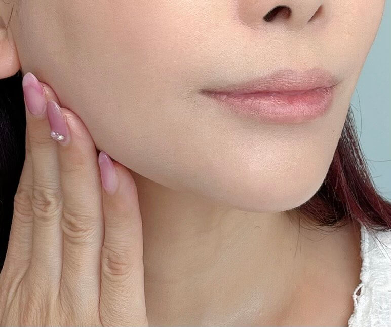 耳下〜あごに線を描き、指でぼかします。たるみを引き締め、横顔をシャープに。