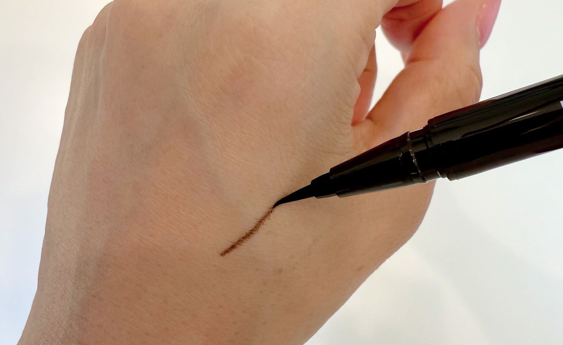 黒のアイライナーは目元を強調できますが、40代以降のメイクには黒の硬さやきつさが出やすくなります。おすすめはブラウンやブラウンブラック。目元を引き締めつつも柔らかさが残るので自然です。