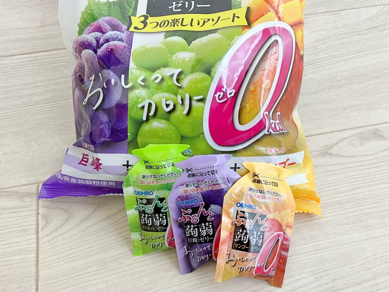 人気の蒟蒻ゼリーシリーズから登場した0kcalタイプ。巨峰・マスカット・マンゴーの3種類の味があり、その日の気分で選べるのがうれしいポイント。