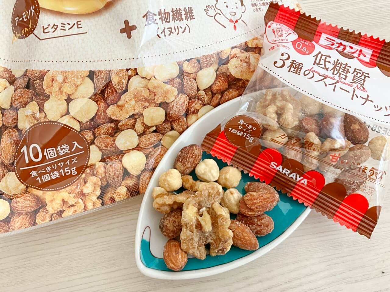 ラカントのナッツシリーズは、低糖質ながらたんぱく質に加え、ビタミンや鉄分、カリウムなどの栄養素も一緒に取れるのが魅力。小腹を満たしながら不足しがちな栄養を補えるので、ダイエット中や健康を意識した間食におすすめです。