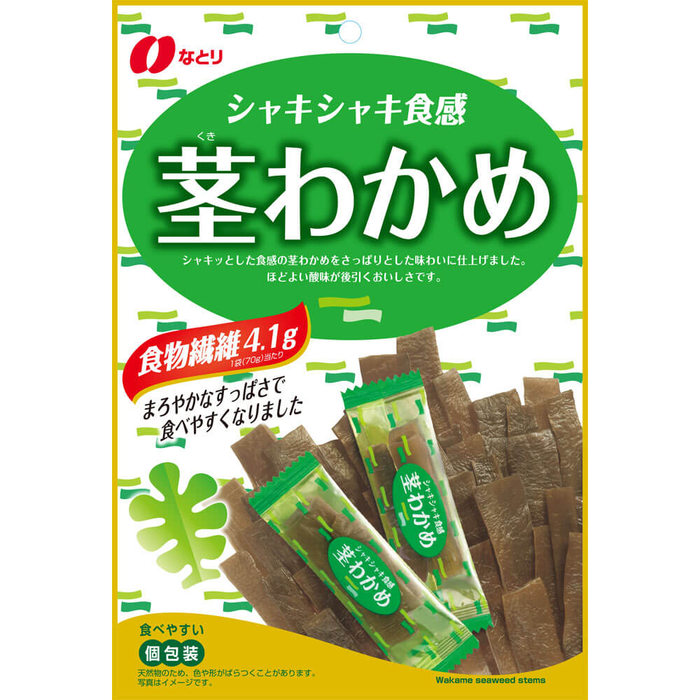 なとり 茎わかめは、シャキっとした噛みごたえのある食感が楽しめます。まろやかな酸味が後を引き、さっぱりとした味わいでつい手がのびる一品。