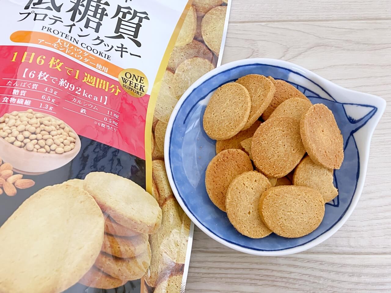低糖質とたんぱく質を同時に意識できる、たよれるクッキー。おからパウダーとアーモンドパウダーを使っており、栄養だけでなく風味や食感にも工夫が感じられます。