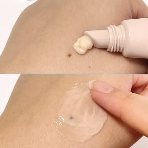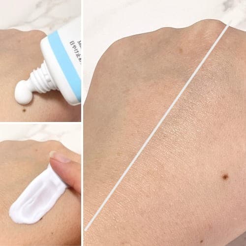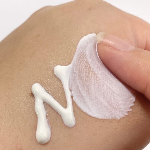 真っ白でとてものびのよいクリームなので、目まわりはもちろん、顔全体にスムーズに塗り広げられます。厚塗り感なく肌にぴたっと密着するので、その後のメイクに影響しにくい点も魅力です。