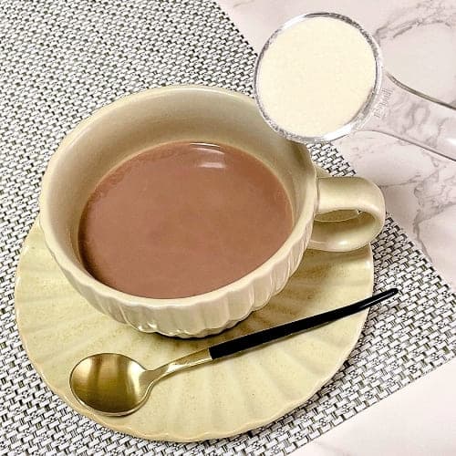 無味のパウダーなので、飲み物本来の美味しさを損なわずに楽しめます。温かいコーヒーやココアに加えると、ダマにならずさっととけるため、気軽に使えるのも魅力です。
