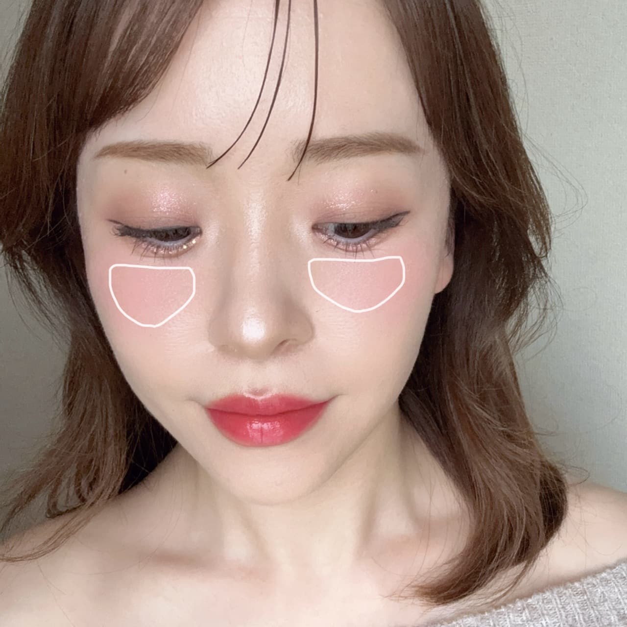 今回は多幸感を意識し、目の下へ半月形になるようにチークを入れます。