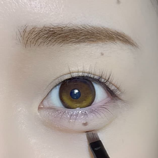 アイブロウパウダーの一番淡い色、もしくは真ん中の色を使って、涙袋の影を描き、立体感を描きます。