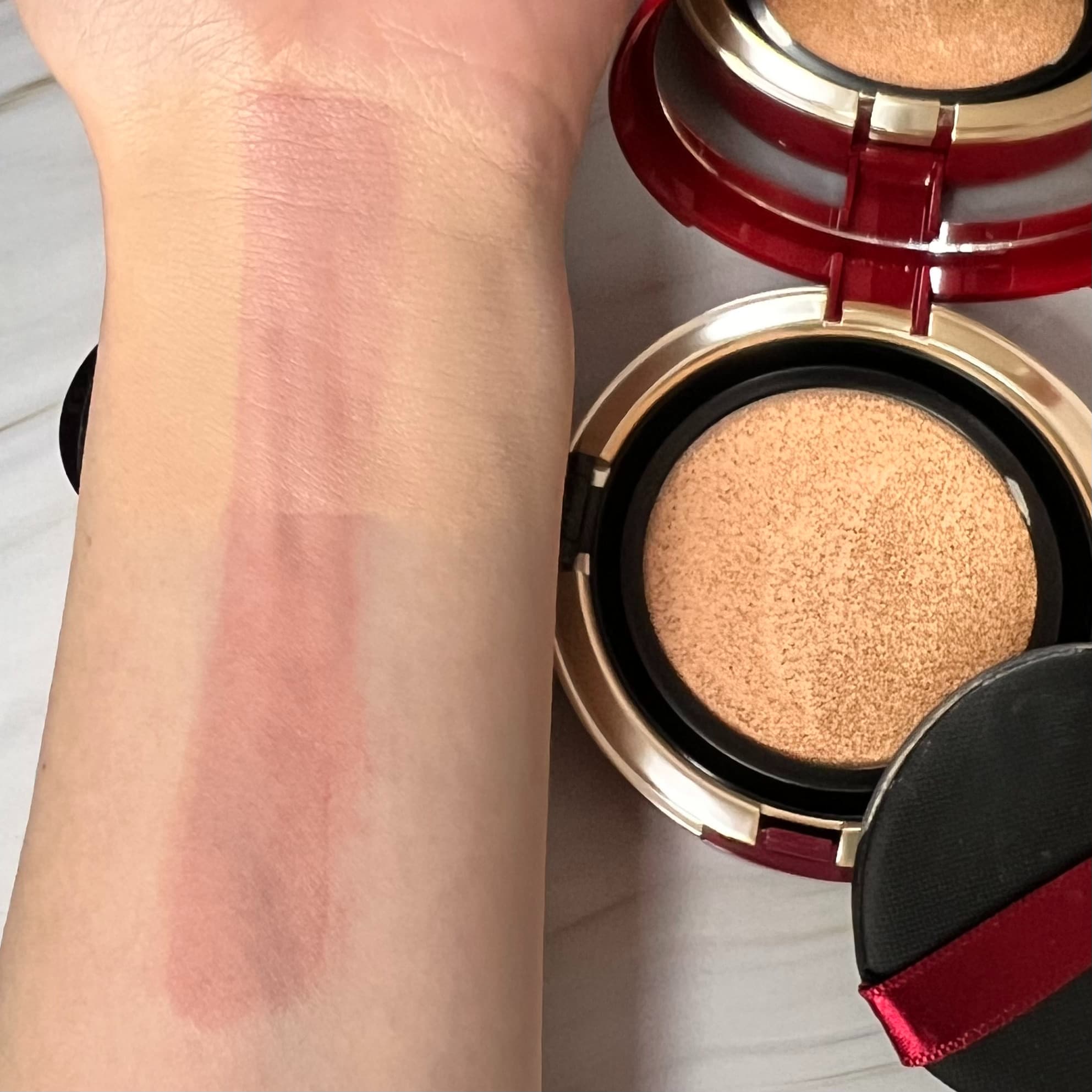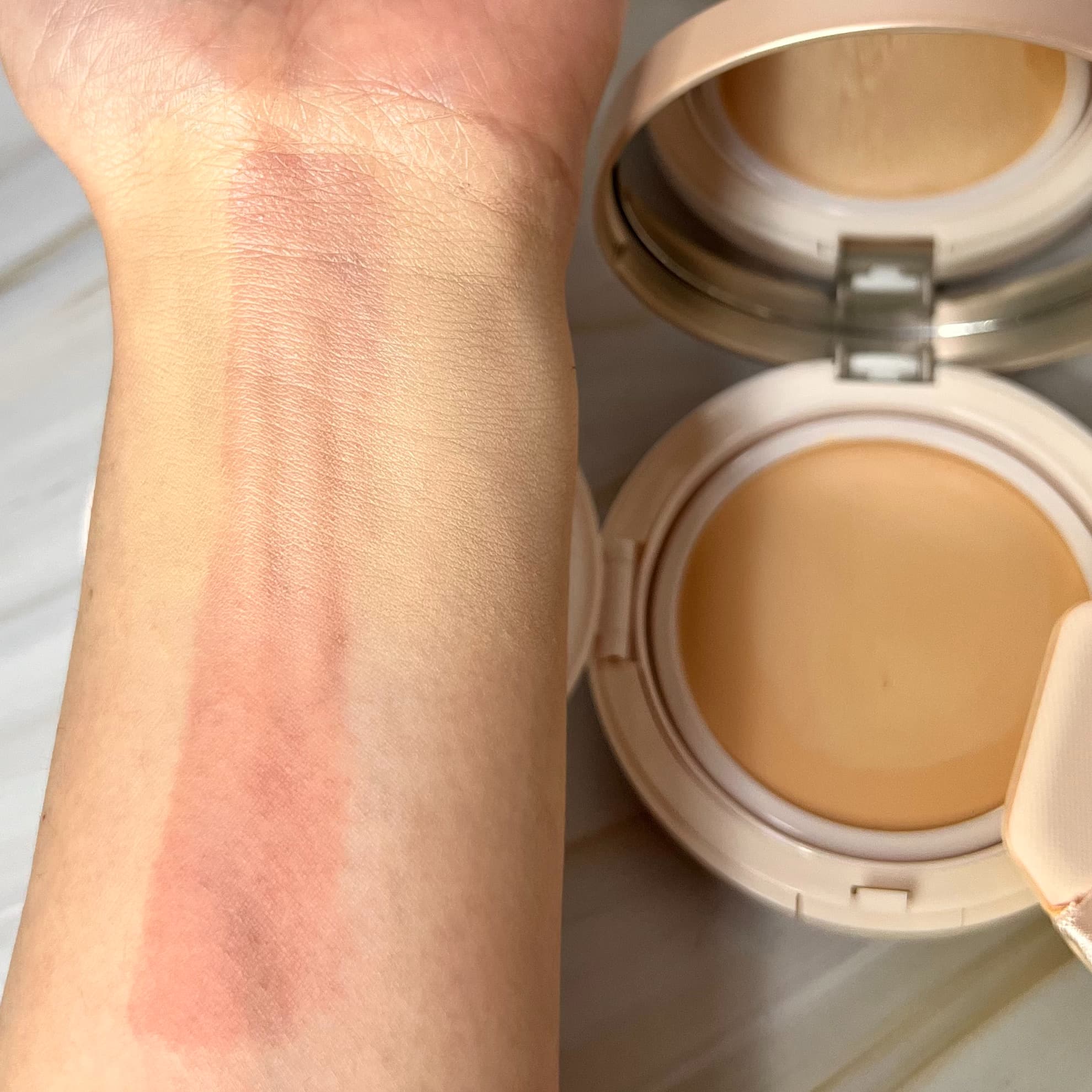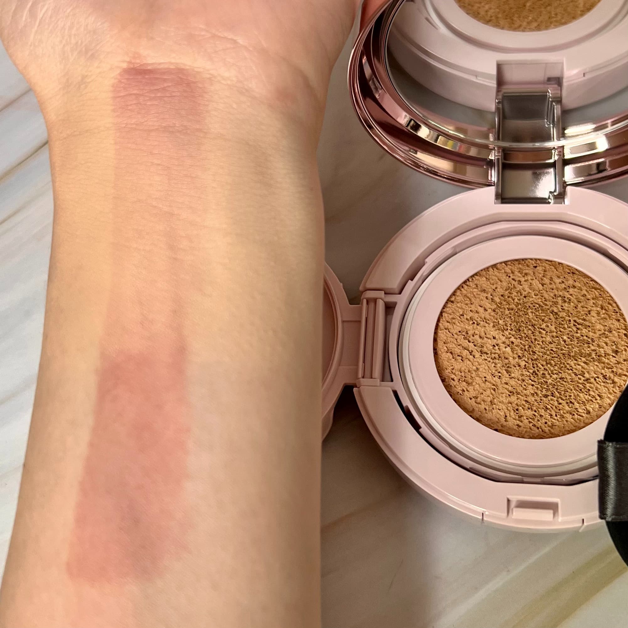 クッションの目が細かいため、パフを当てるとジュワッとファンデーションが染み出し、適量をしっかり取れるところもよいですね。