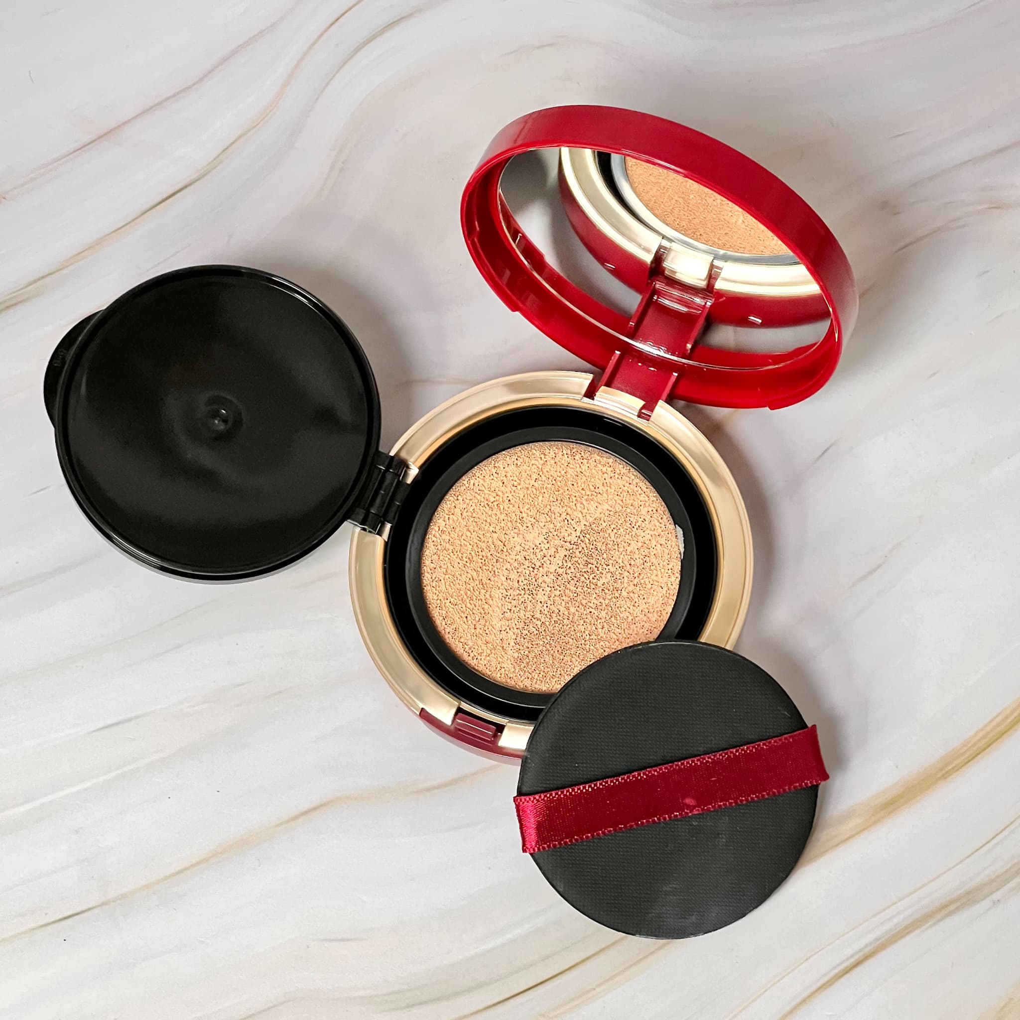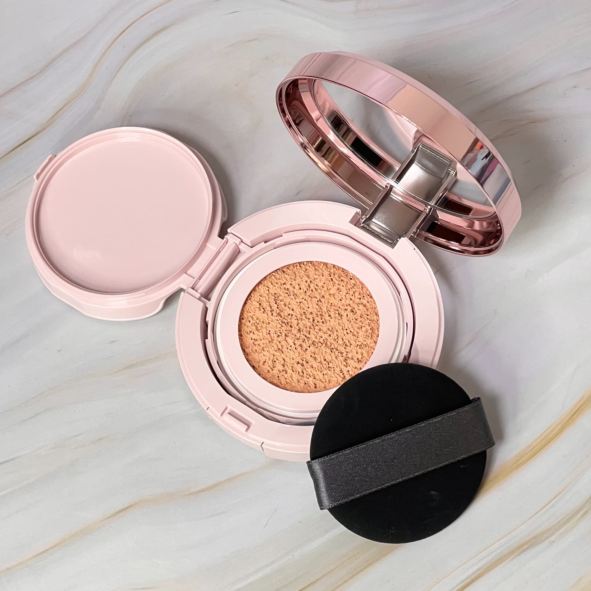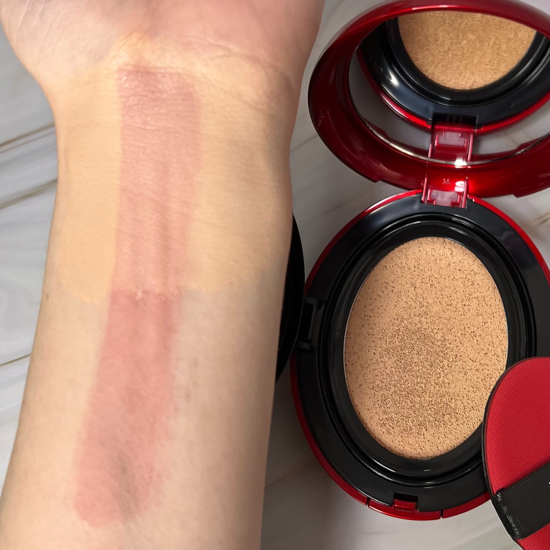 クッションの目が細かいため、パフを当てるとジュワッとファンデーションが染み出し、適量をしっかり取れるところもよいですね。