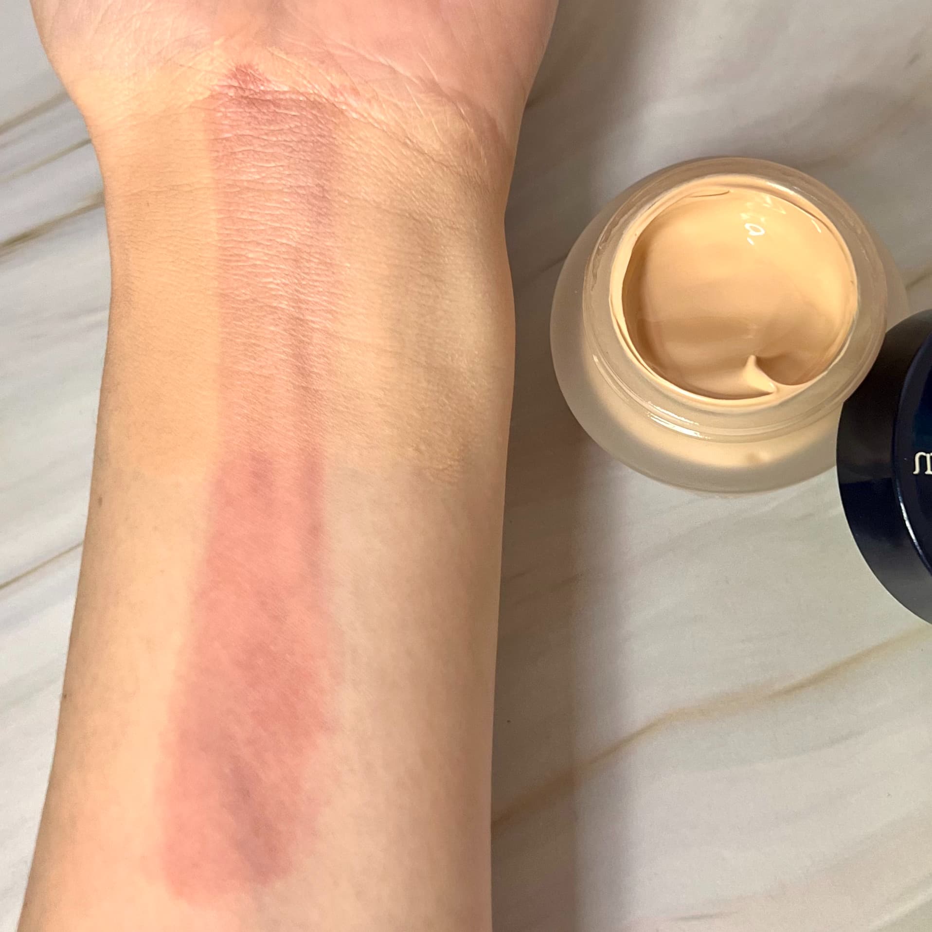 さらっとしたテクスチャーでのびがよいです。薄膜でぴたっと密着するため、こすれに強くくずれにくいですよ。