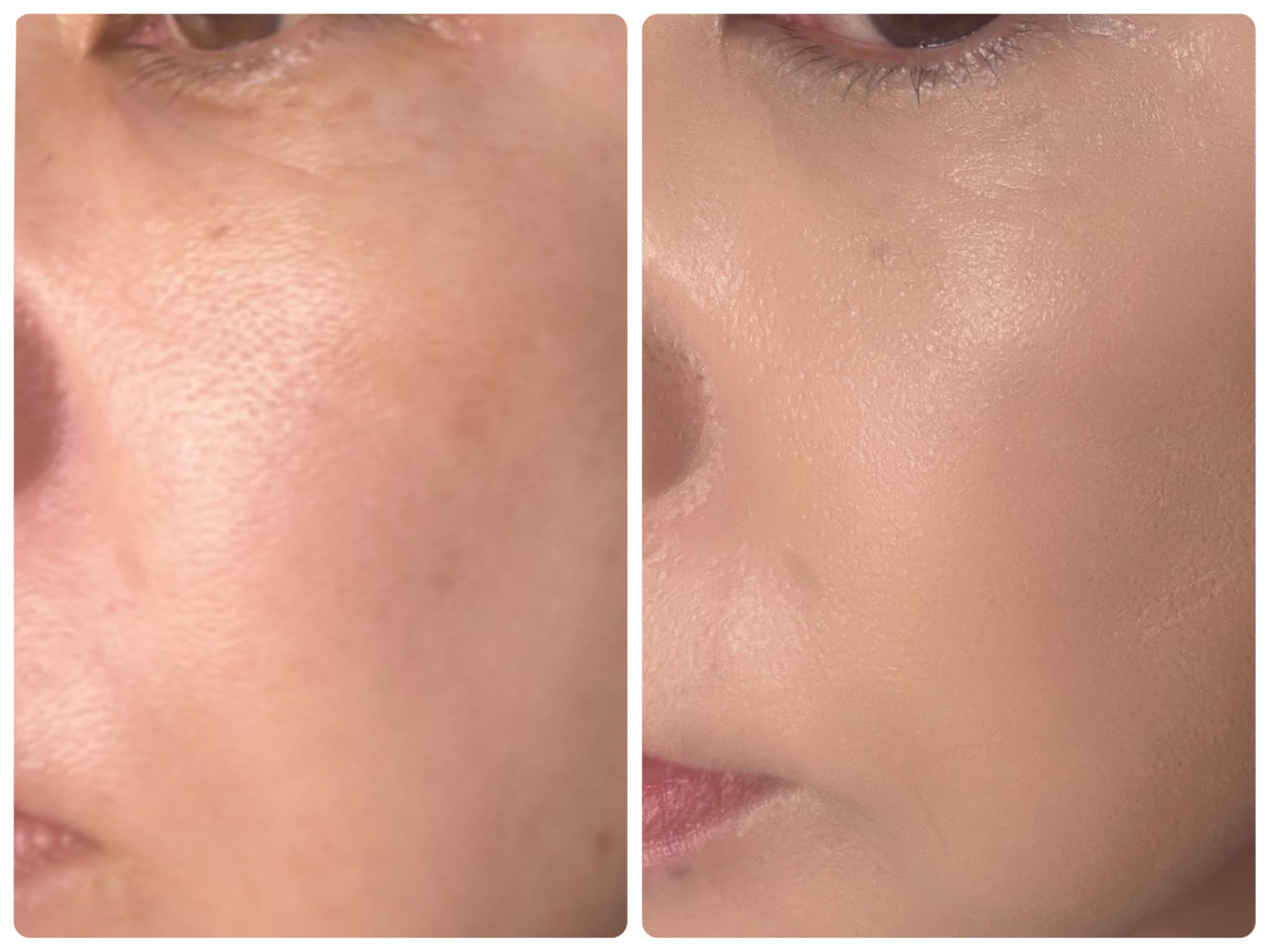 肌にするっとのびてムラになりにくい印象。頬の毛穴もふわっとカバーし、長時間メイクしたての状態をキープできました。