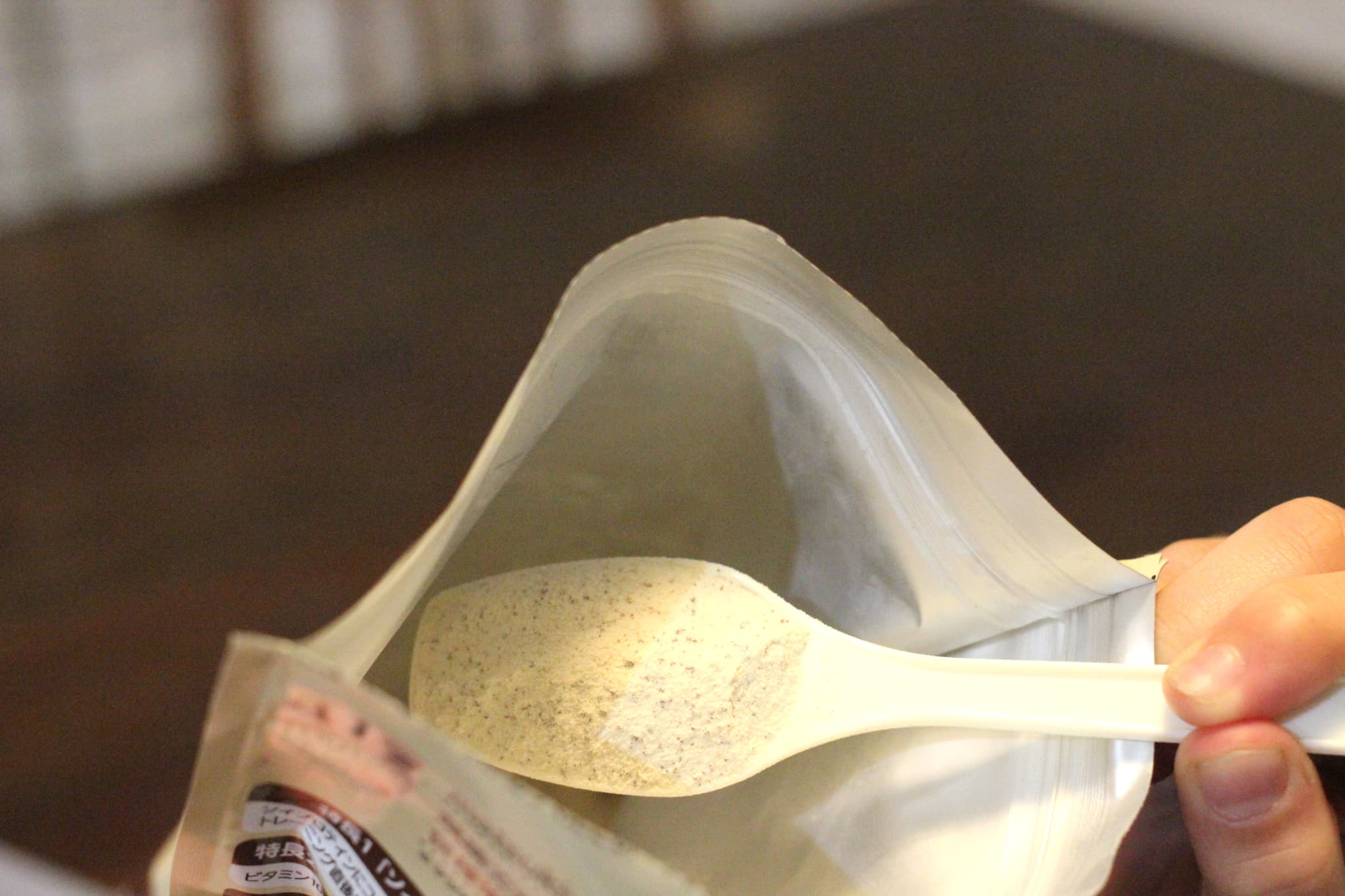 スプーンですくうとコーヒーの粉が混ざっているのがわかり、袋を開けた瞬間に香ばしい香りが広がります。コーヒー好きにはたまらない風味なので、男性も飲みやすいでしょう。植物性のソイプロテインにこだわる人にもうれしいですね。