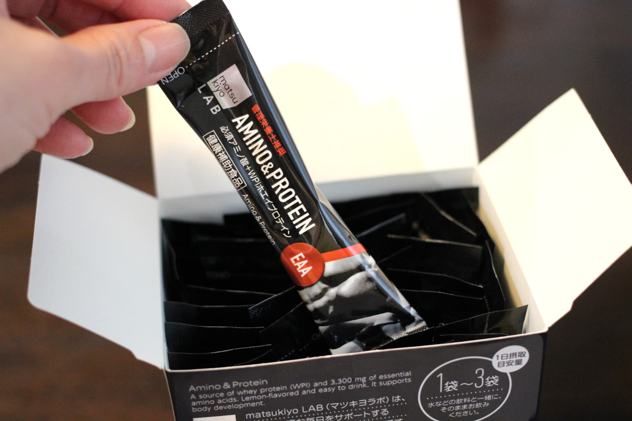 1.シェイカーいらずで筋トレ直後にホエイプロテインを摂取「matsukiyo LAB アミノ&プロテイン」