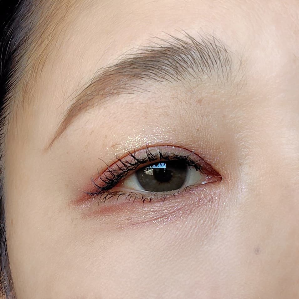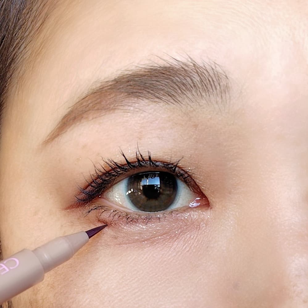 甘めな雰囲気が作りやすいピンク系カラーですが、アイシャドウで作る地雷ラインよりもシャープに仕上がります。リキッドラインならではのかわいらしさとクールさを兼ね備えた目元にメイクできます。