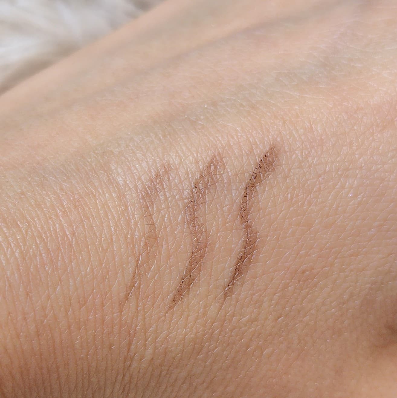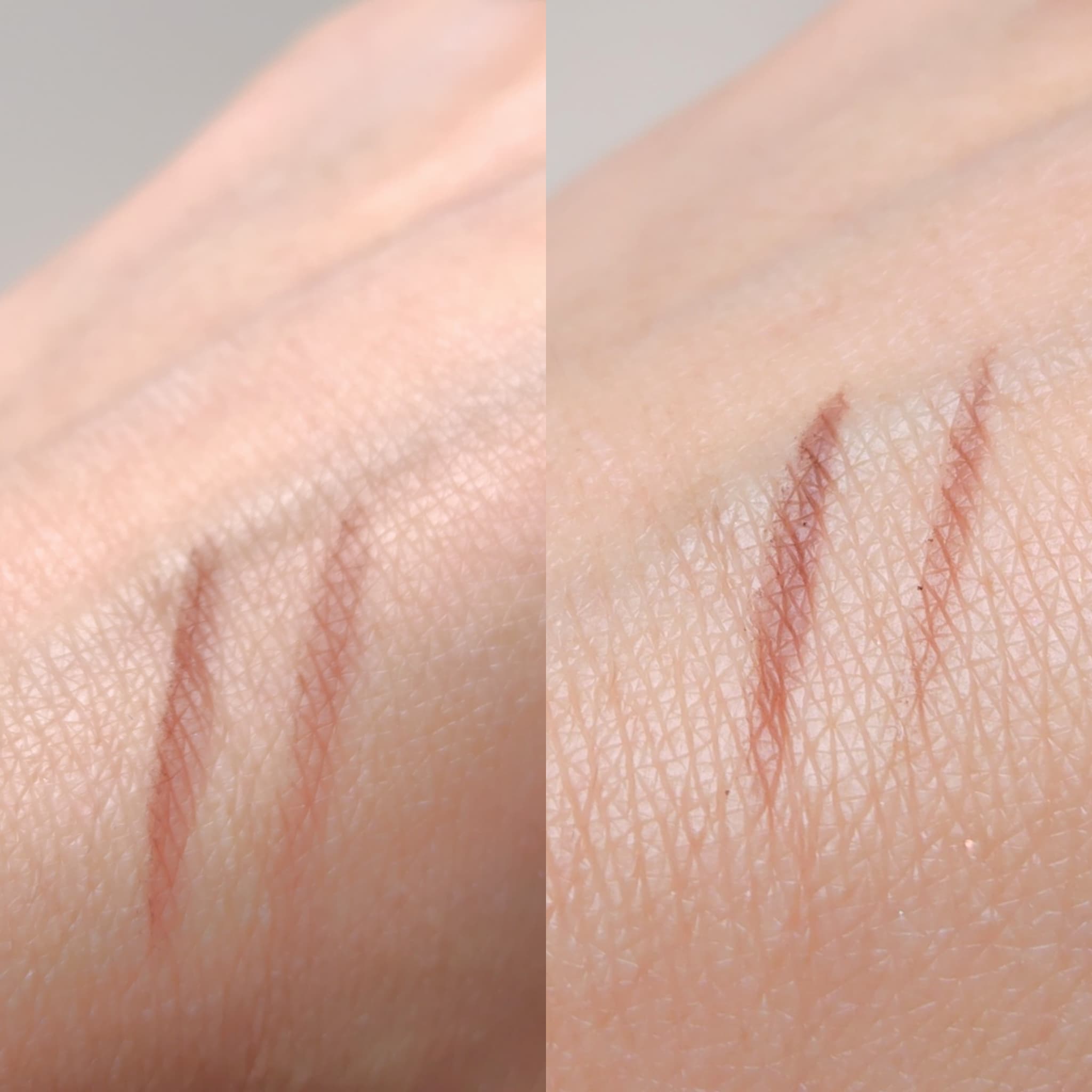 黒よりもやわらかい雰囲気のピンクグレージュで、目元がやさしく際立ちます。濃密な発色となめらかな描き心地で仕上がりがくっきりとしやすいので、ラインを引いた後はアイシャドウでぼかすとナチュラルな雰囲気になります。