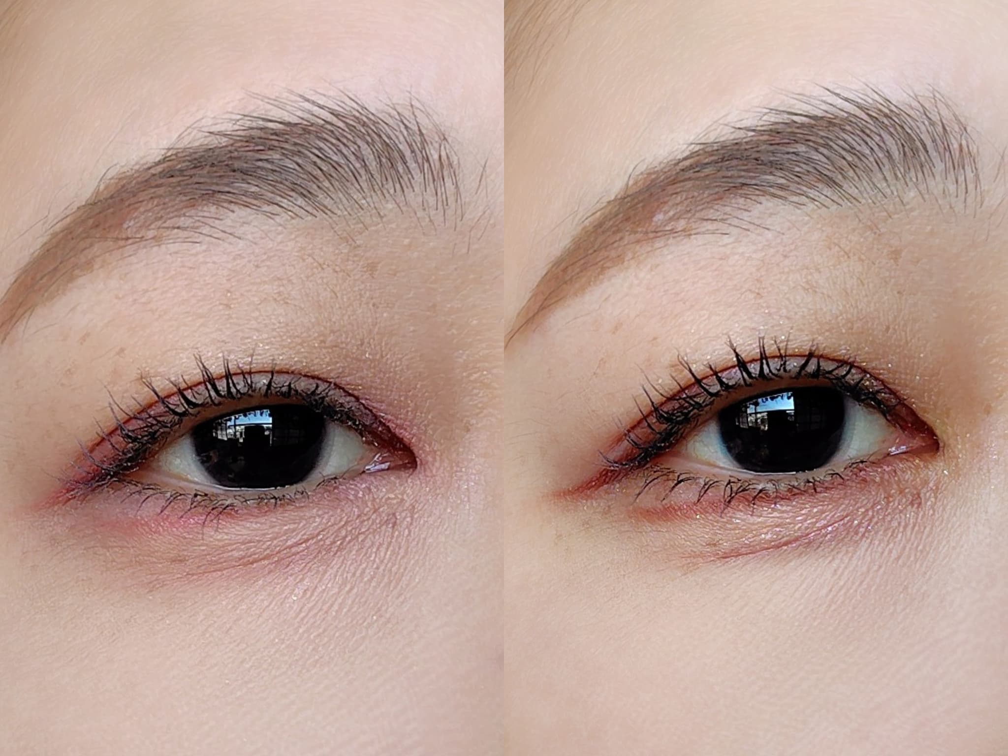 ラインのシャープさを抑えたいときは、上からアイシャドウを重ねてぼかすとやわらかい印象になりますよ。